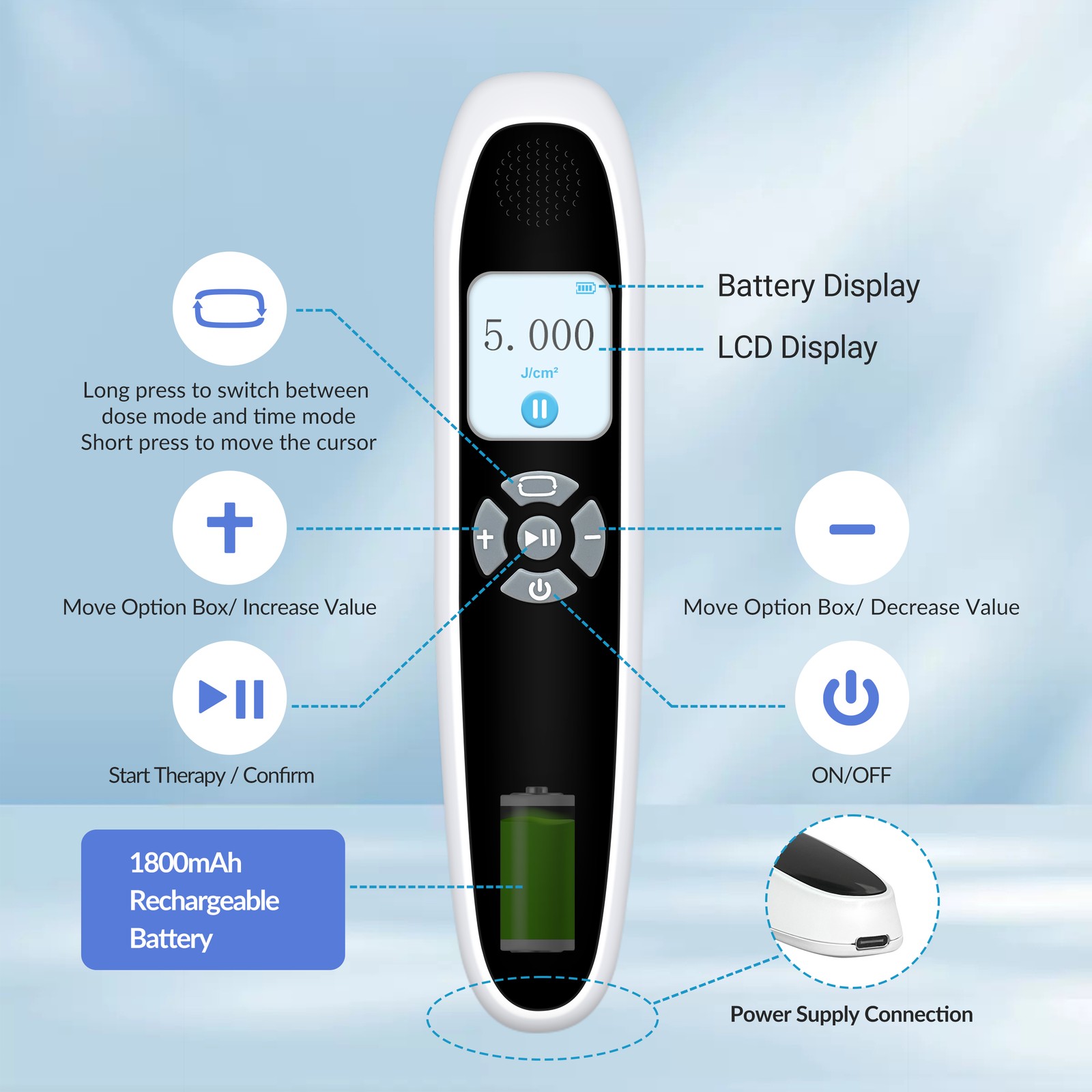 Dose Setting: 0-5J/cm² Adjustable