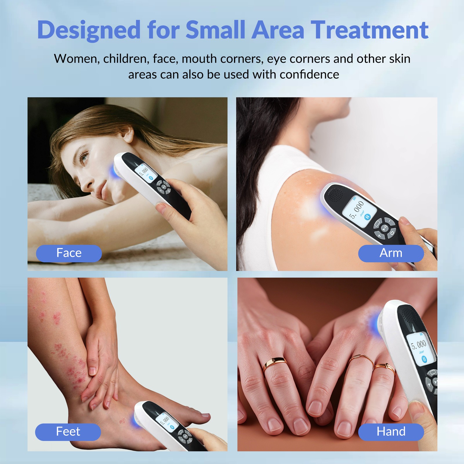Body Area: Face, Foot, Hand, Skin, Leg, Arm