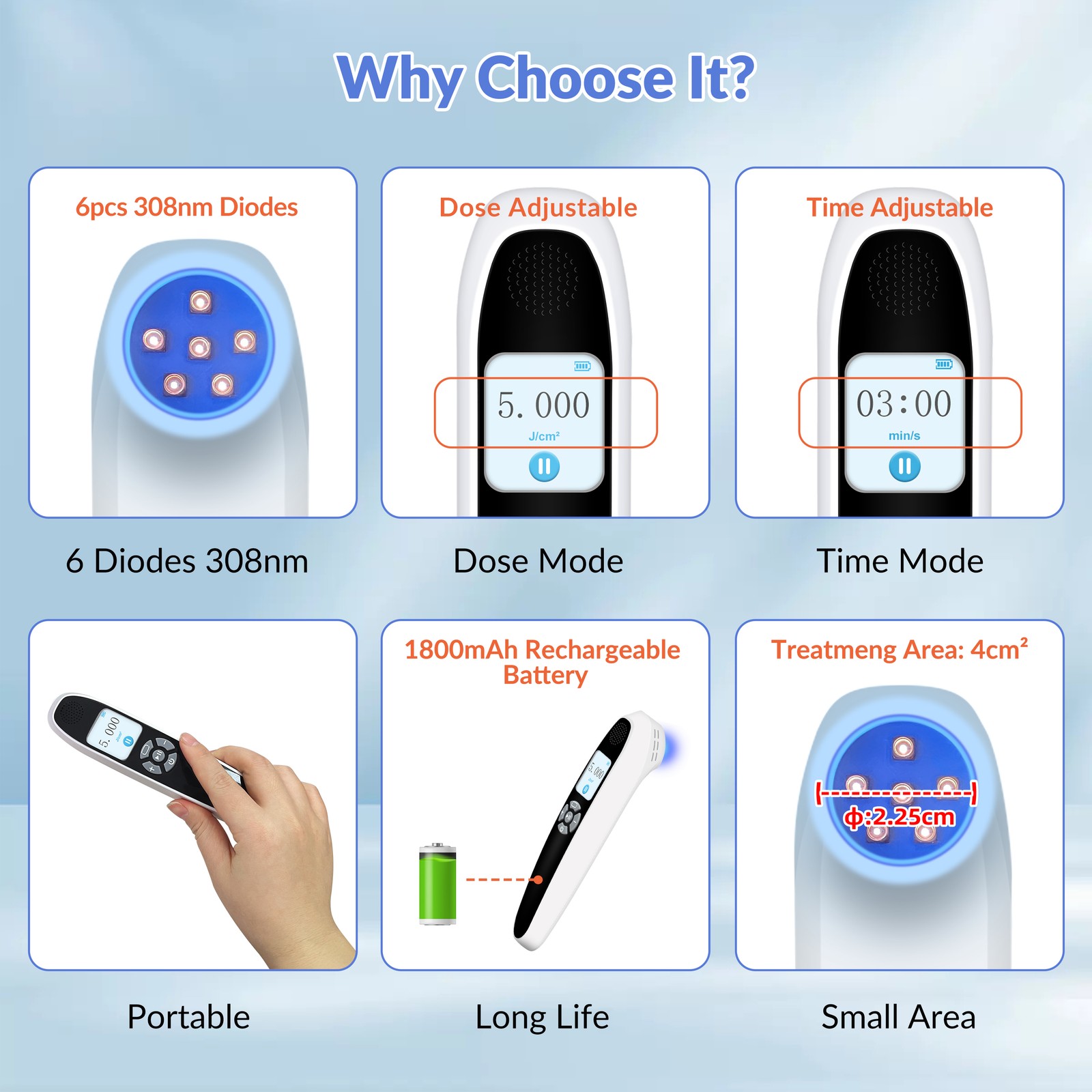 308nm Excimer Light Therapy Device 6 Diodes 35mW UVB Lamp for Leg Skin Problems