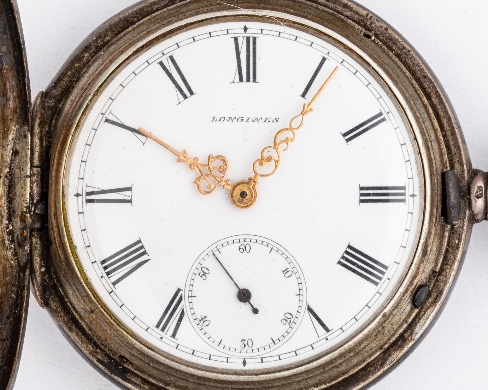как выглядит Antique Longines Demi-Hunter Pocket Watch w/Silver Niello Case out of Estate фото