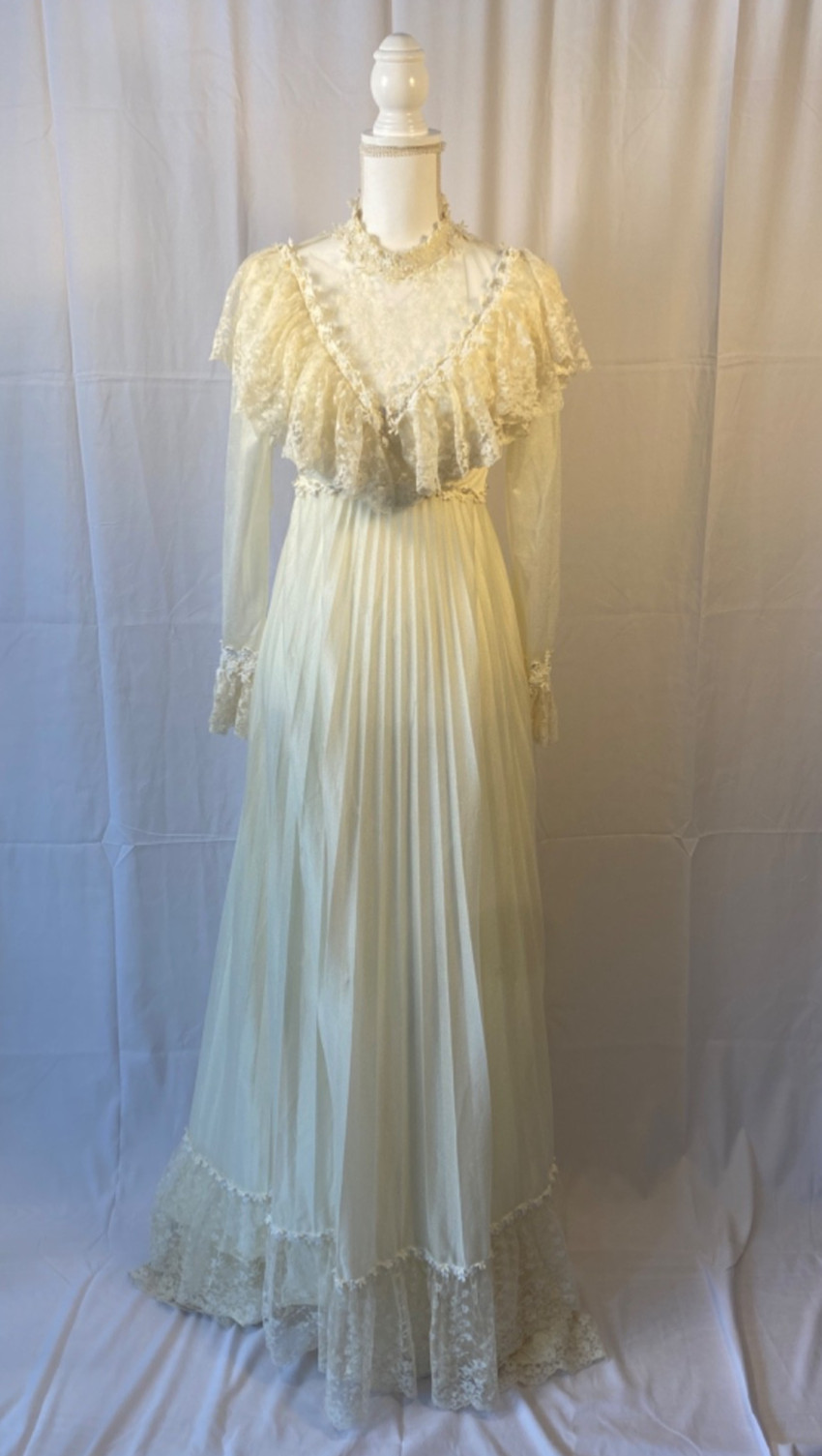 Vintage 1970s Bridal Ivory Cottagecore Wedding Dress Ruffle Lace 8 Union Made