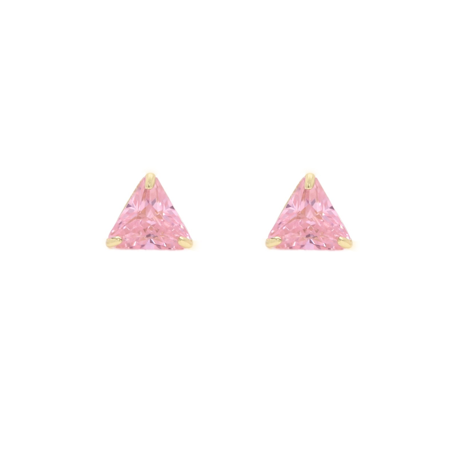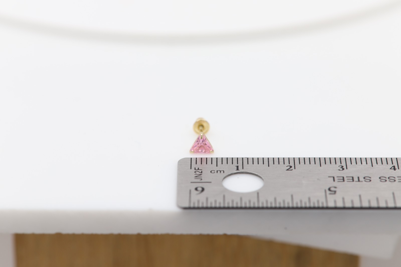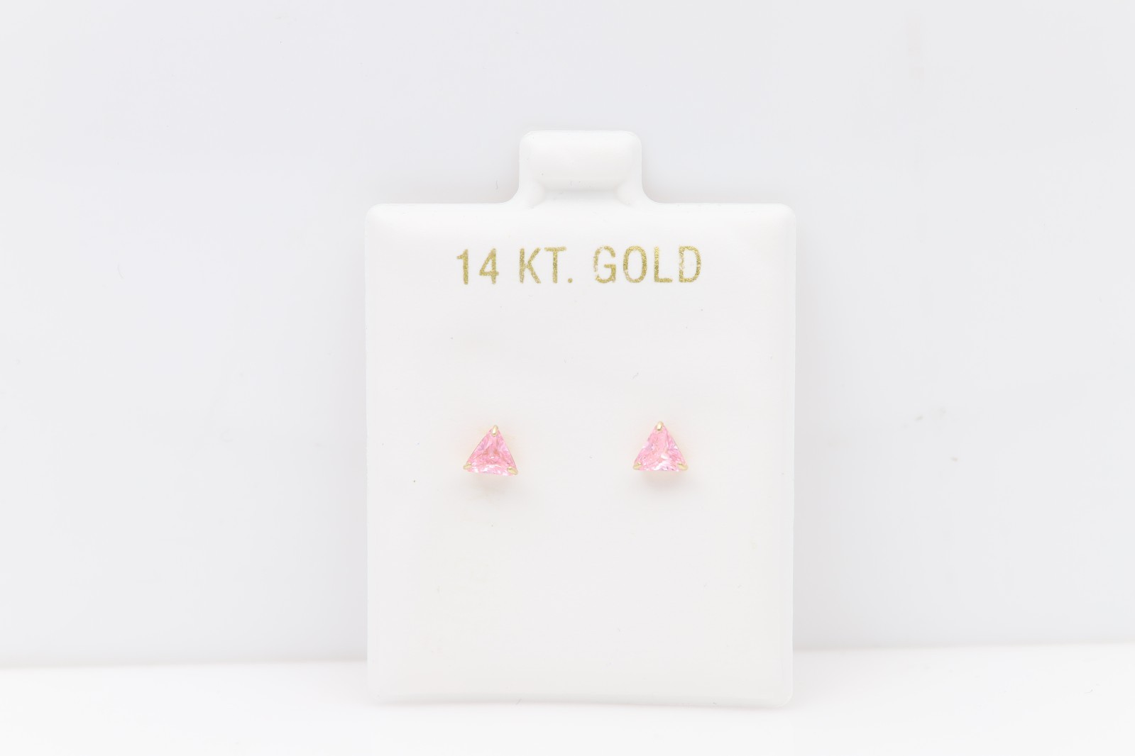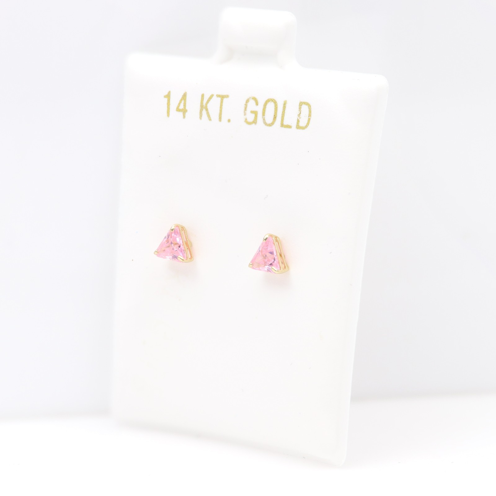 как выглядит Pink Baby Earrings Solid 14k Gold Screw Protective Backs Triangle Shape 5mm фото