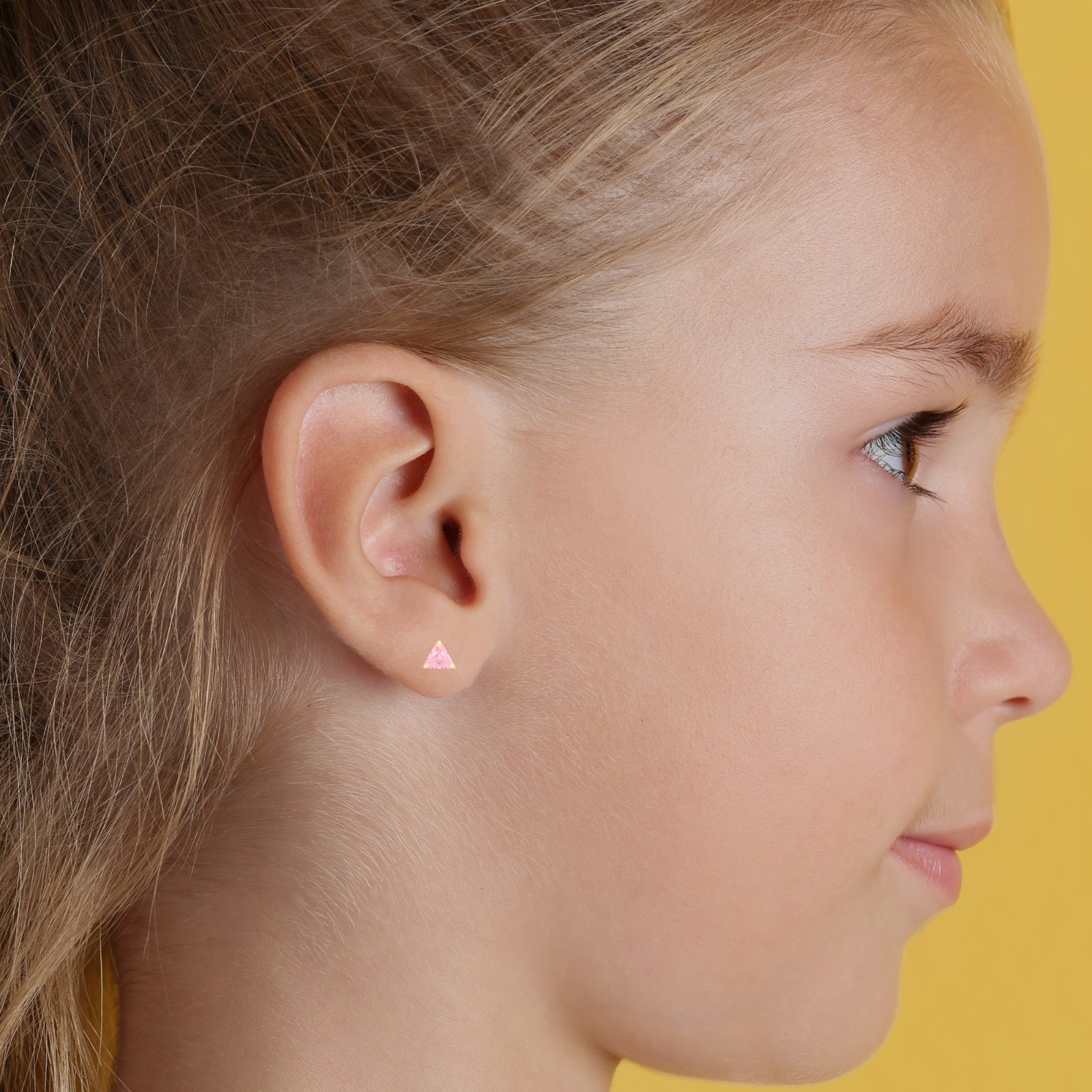 Pink Baby Earrings Solid 14k Gold Screw Protective Backs Triangle Shape 5mm