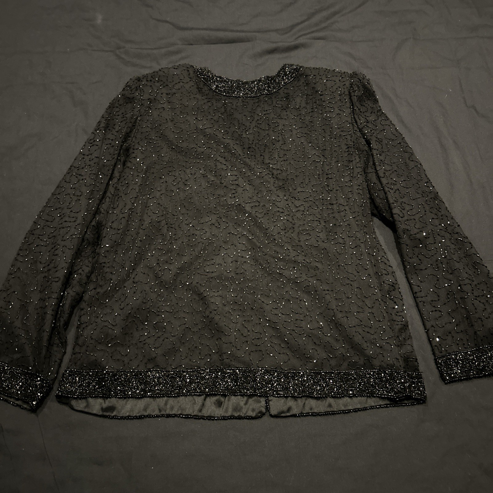 VTG LAWRENCE KAZAR SILK Black SEQUIN BEADED JEWELED NY JACKET BLOUSE TOP XL B11