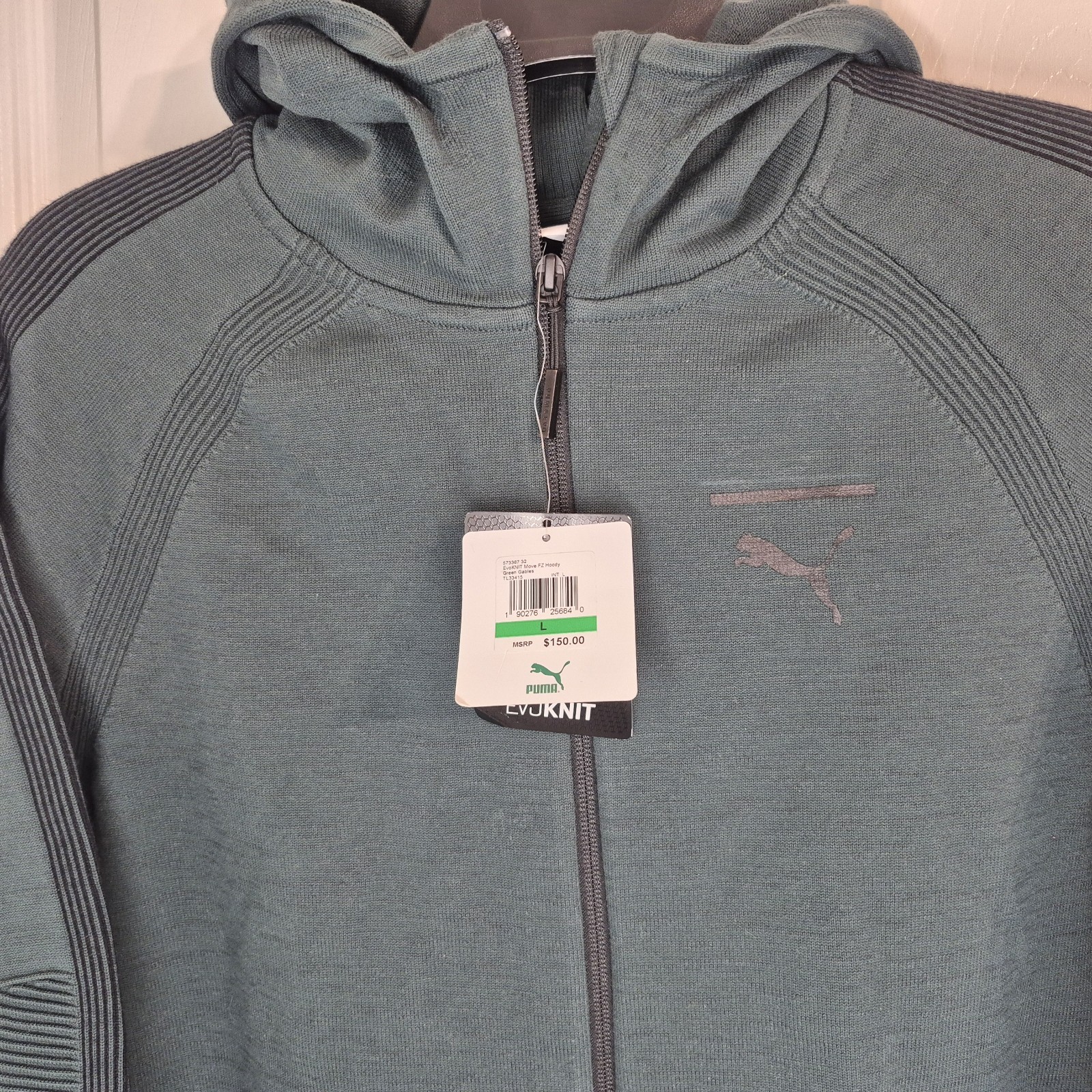 как выглядит Puma Evolution Green EvoKnit Move Size L Hooded Track Jacket Hoodie Mens NWT фото