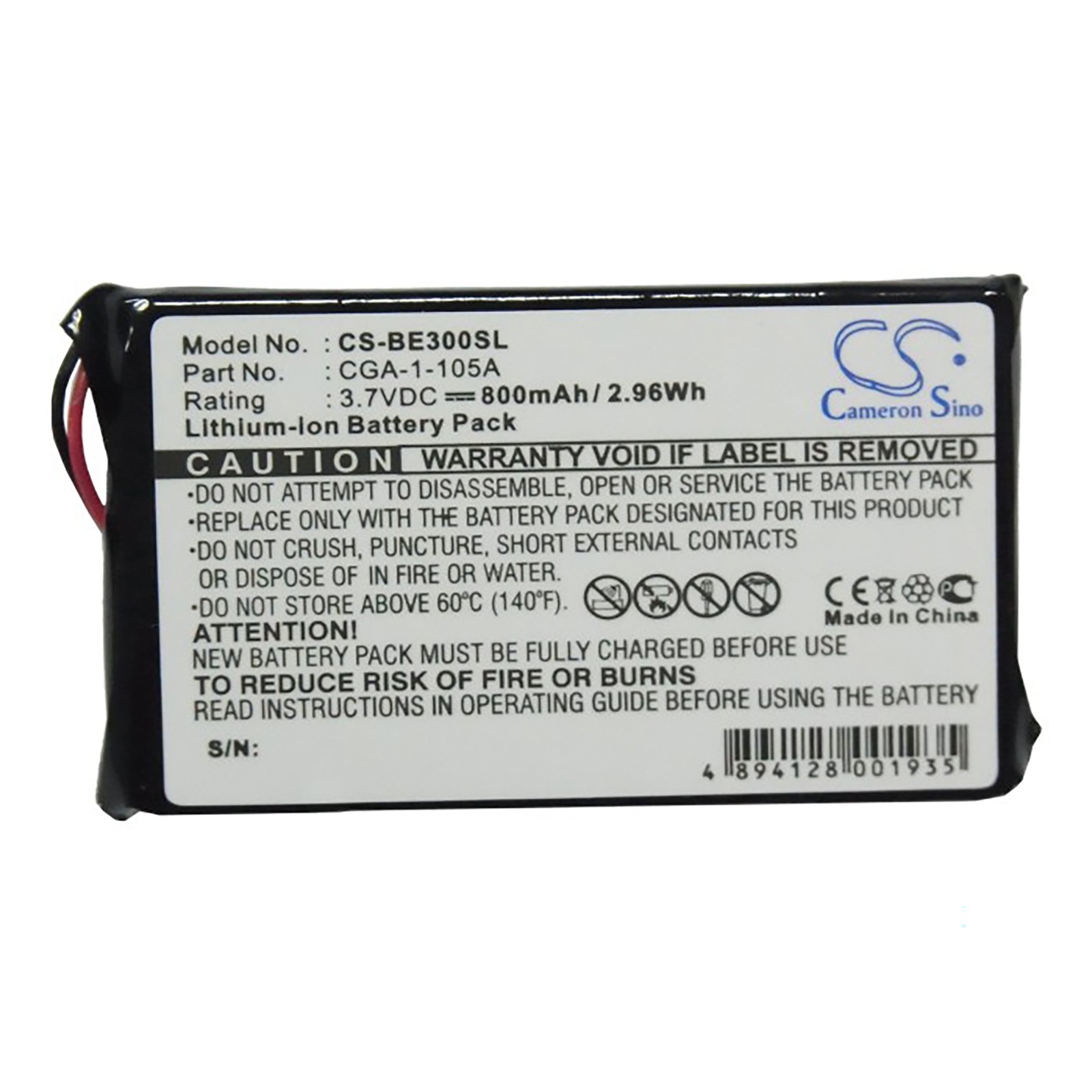Battery for Casio Cassiopeia BE-300 BE-500 CGA-1-105A Pocket PC CS-BE300SL 800mA