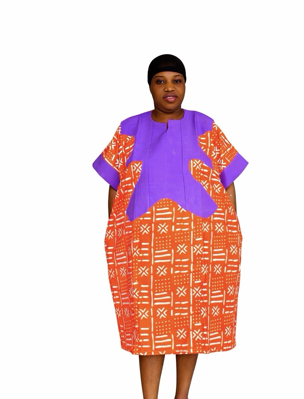 Women's Plus Size Purple and Orange Kaftan Dress Traditional Ethnic Pattern