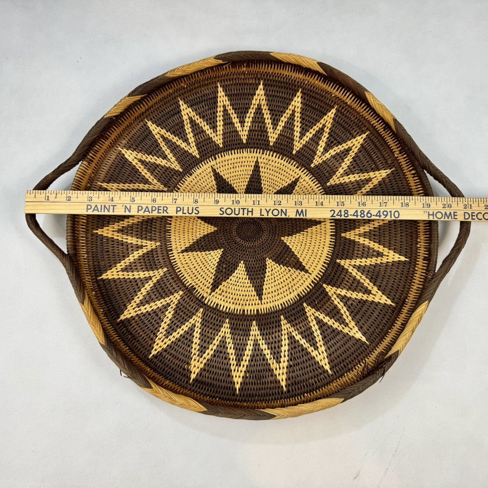 Large Round Woven Wicker Serving Tray Starburst Pattern Boho Brown Tan 18in