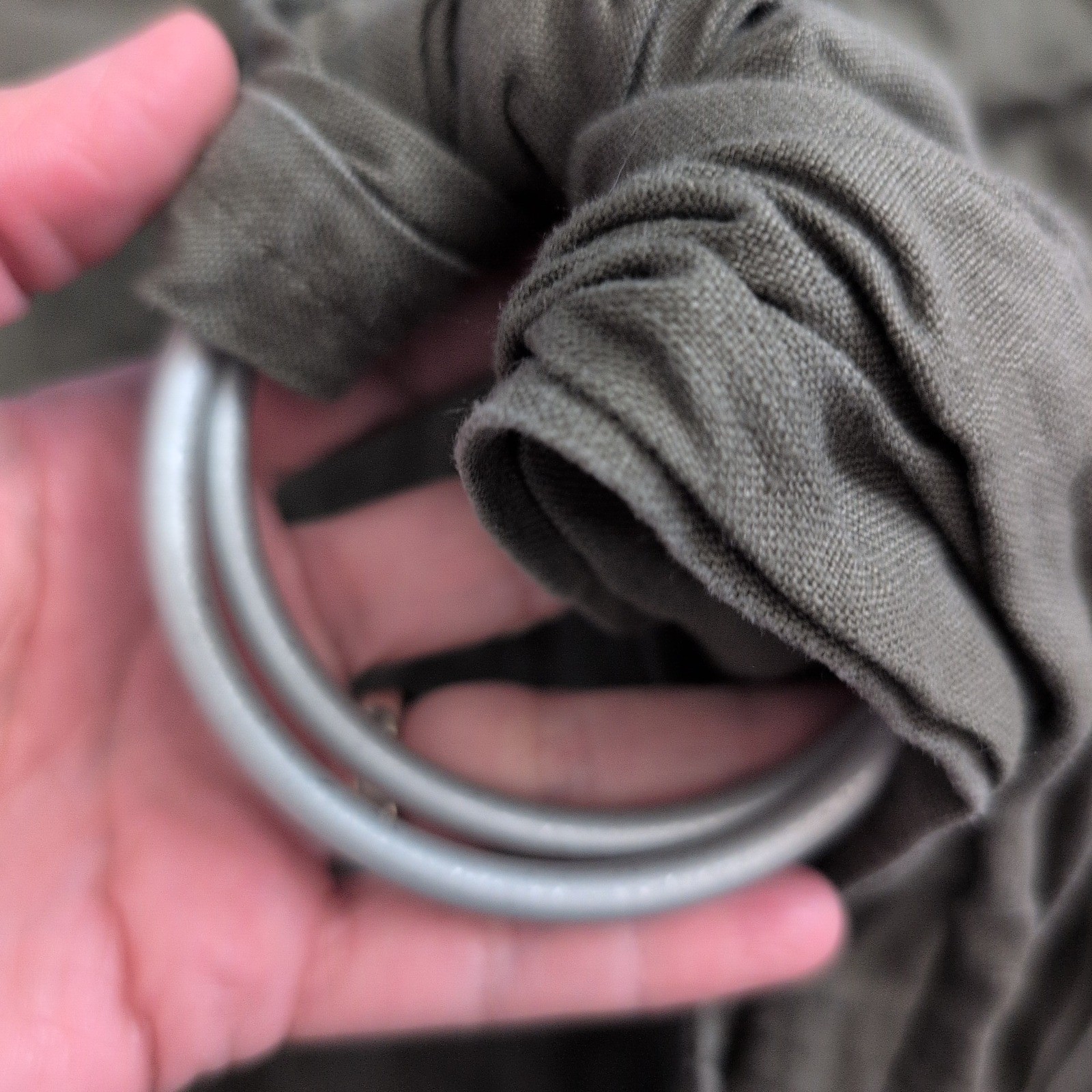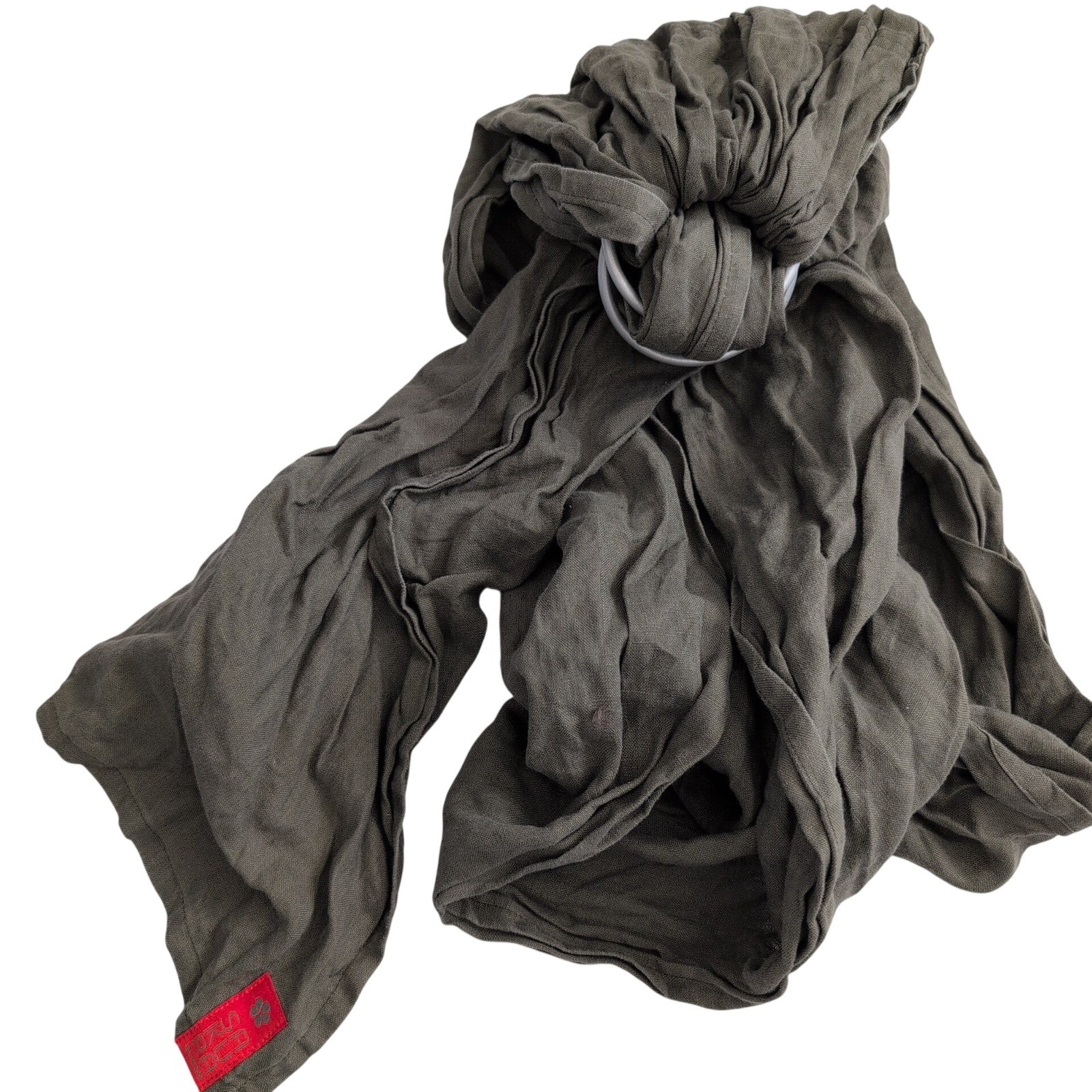 Sakura Bloom Linen Ring Sling Baby Carrier Olive Green Matte Natural 75 EUC