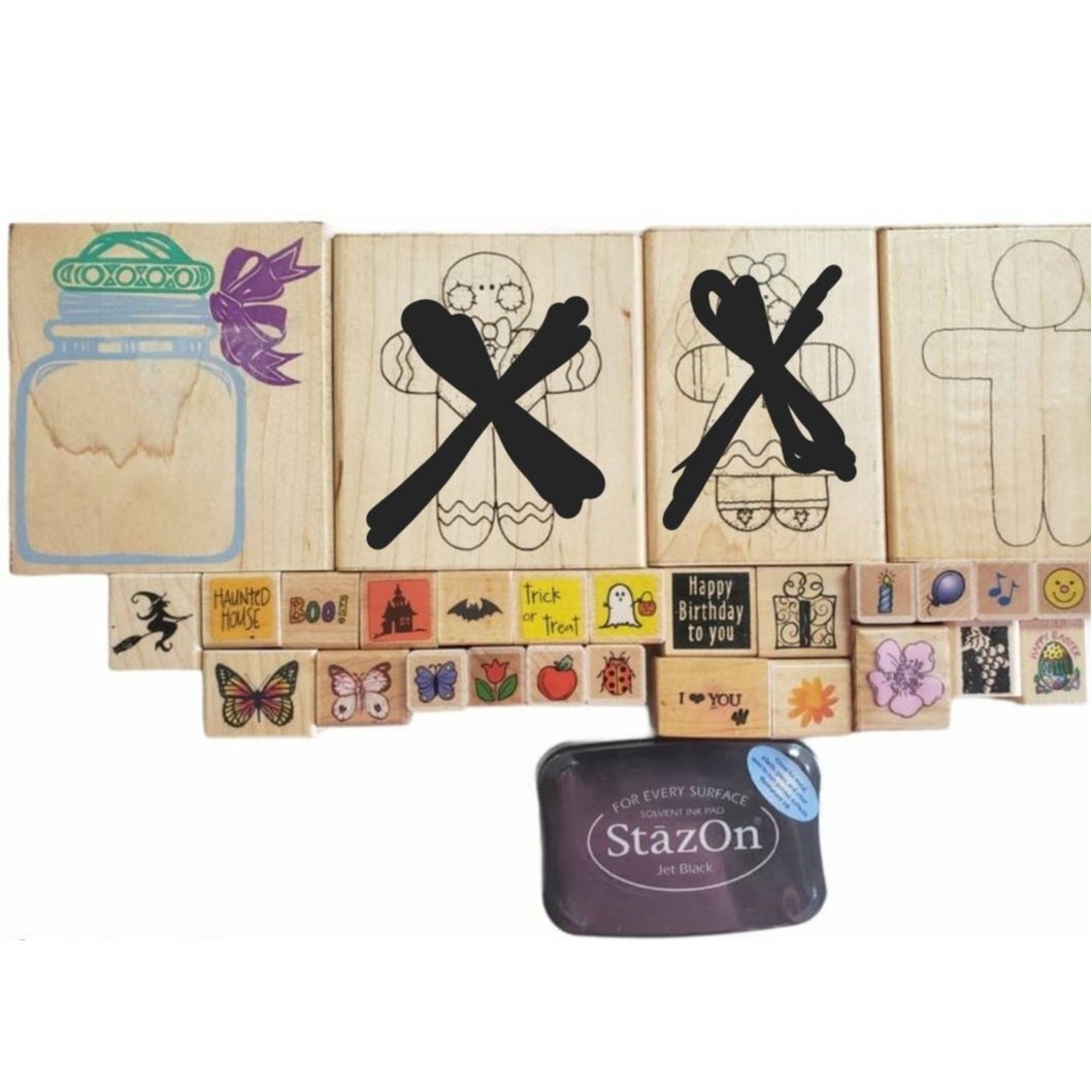 Wood Block Rubber Stamp Collection Scrap Book Crafting Cards Holiday LOT of 70