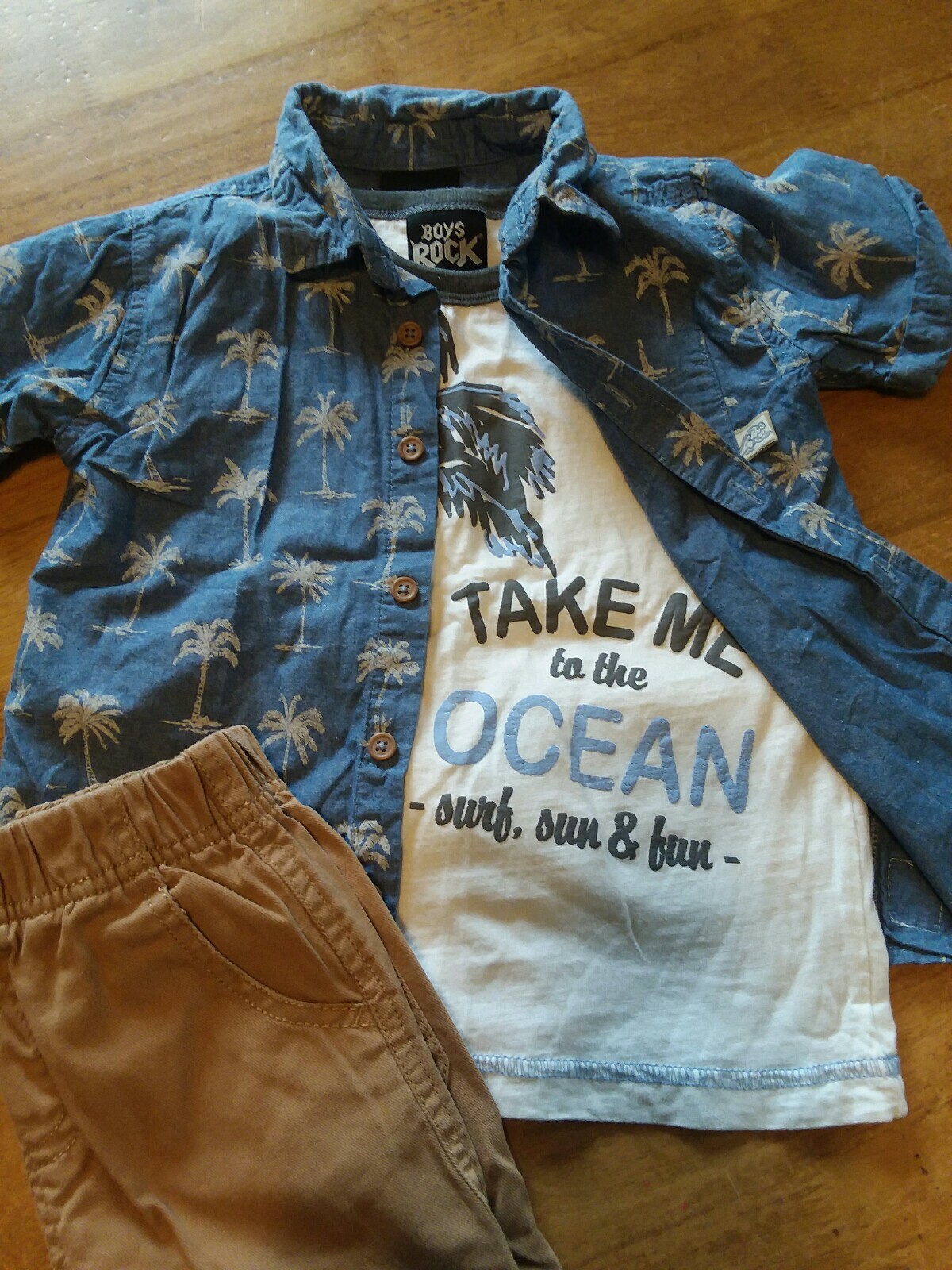 Boys Rock Outfit 3 Piece Set Boys size 5 features Palm trees.