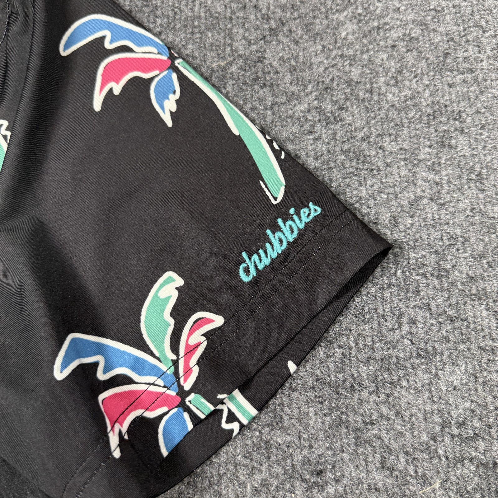 как выглядит Chubbies Polo Shirt Mens Medium Black Palm Tree Print Golf Performance Stretch фото