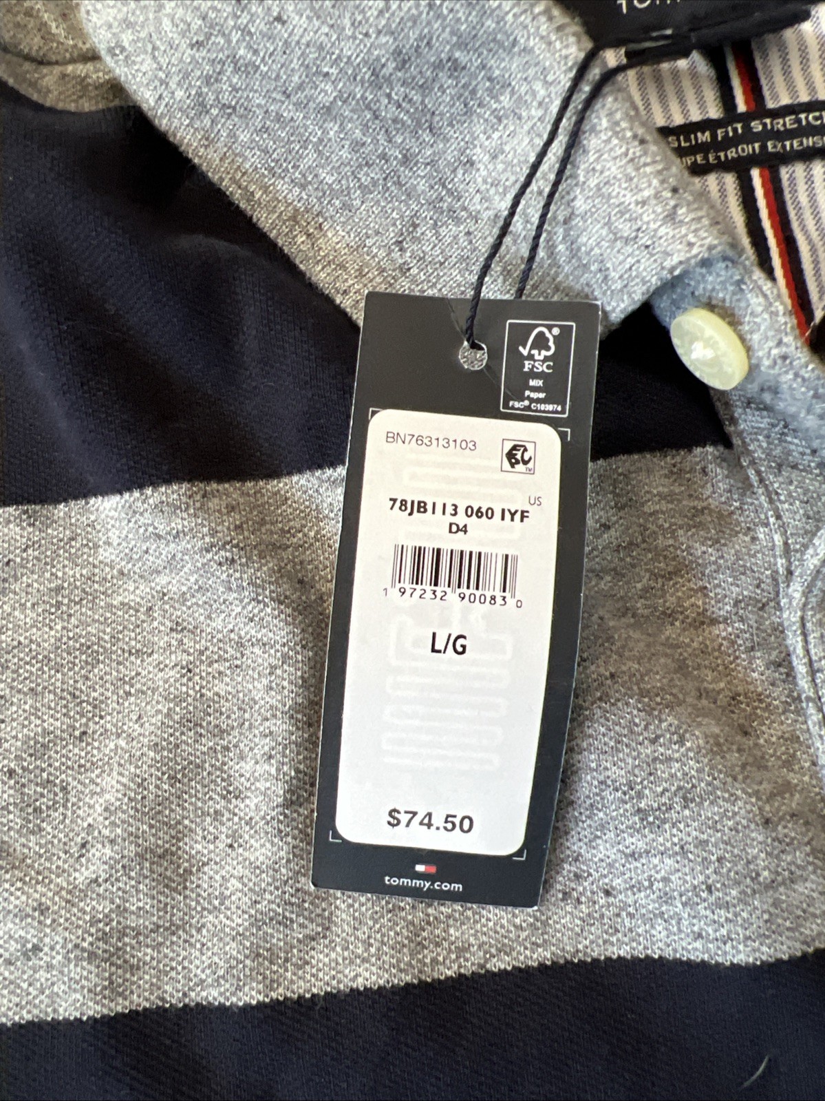 Tommy Hilfiger Polo Men s Large Navy And Gray 74.50 Slim Stretch