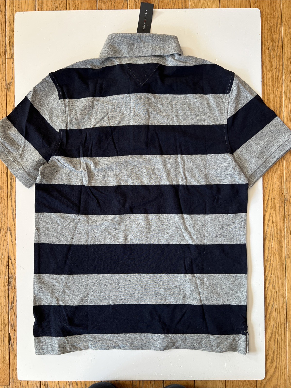 как выглядит Tommy Hilfiger Polo Men s Large Navy And Gray 74.50 Slim Stretch фото
