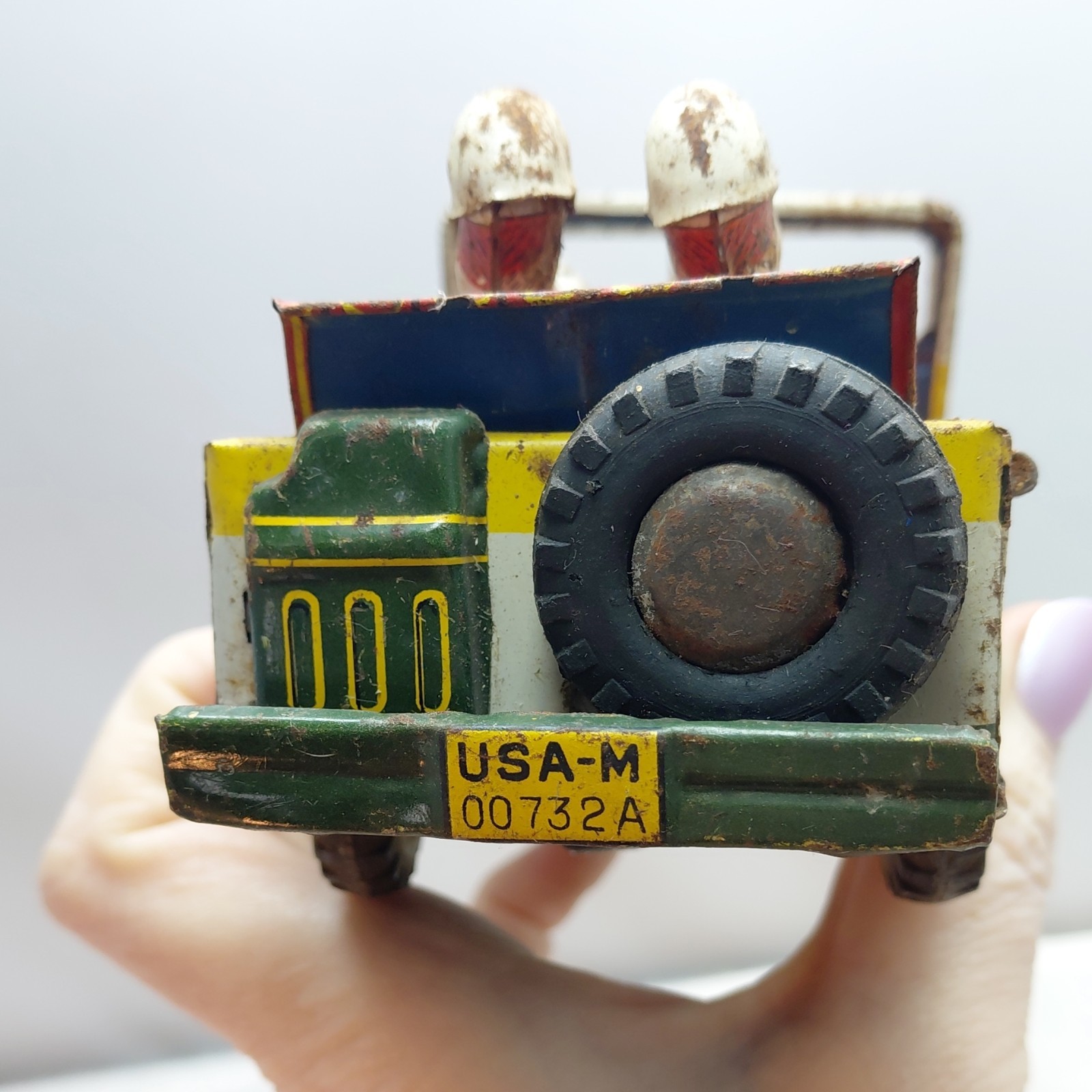 как выглядит Vintage M.P. Military Police Tin Litho Jeep AM-5819 working Friction Car Japan фото