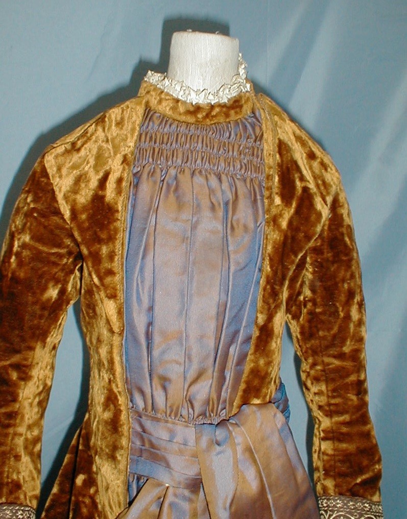 Opulent Antique Child's Bustle Dress Victorian 1880 Plush Gold Velvet and Silk