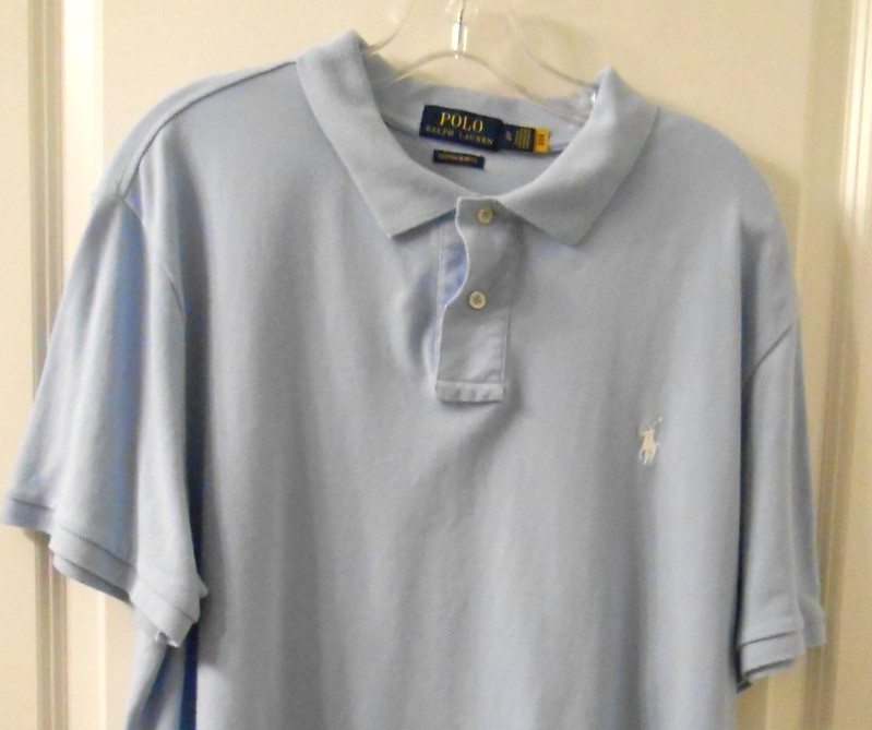 как выглядит mens POLO by Ralph Lauren Blue Polo Shirt Top Cotton Blend Size XL фото