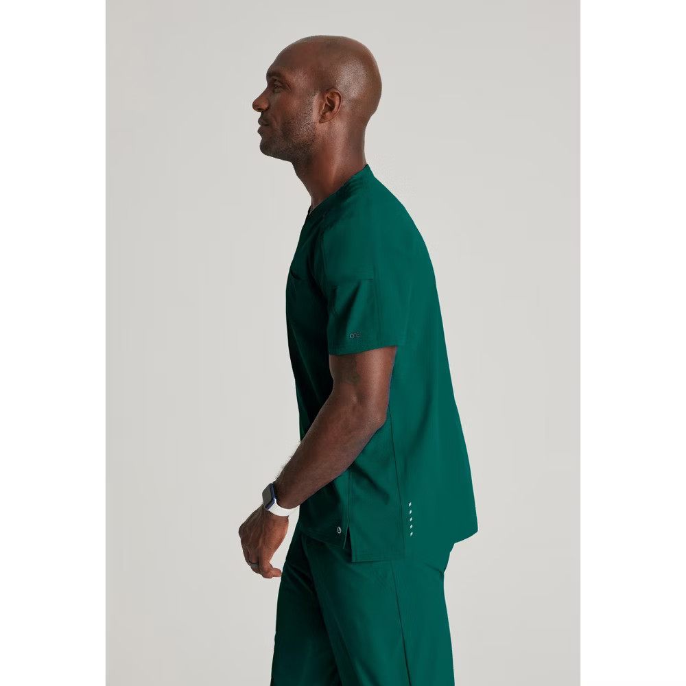 Barco One Men's Velocity 2-Pocket Ribbed V-Neck Scrub Top Medium Hunter Green.