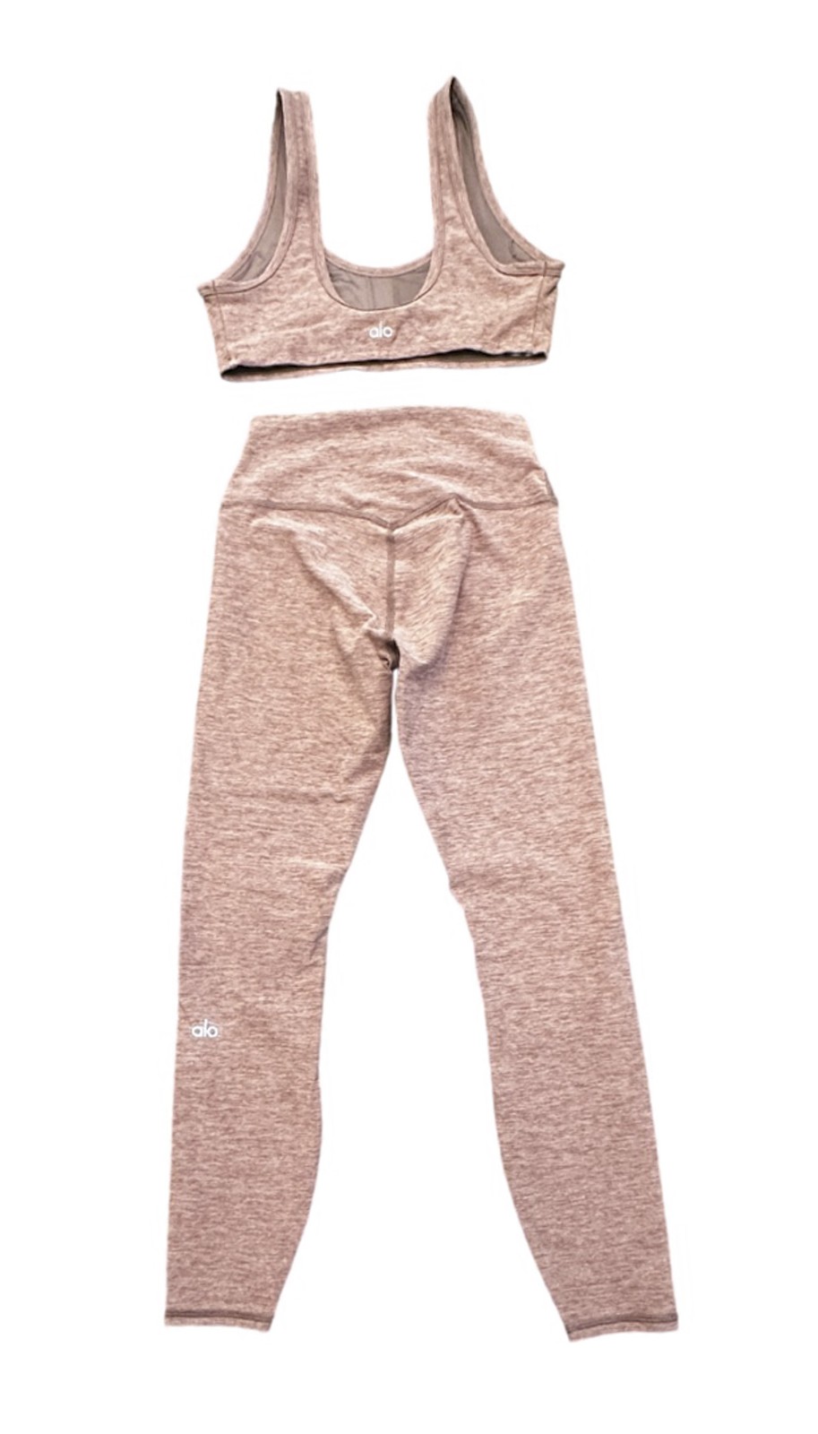 ALO Yoga Alosoft High Waist Heather Gravel Leggings Bra Crop Top 2 Piece Set