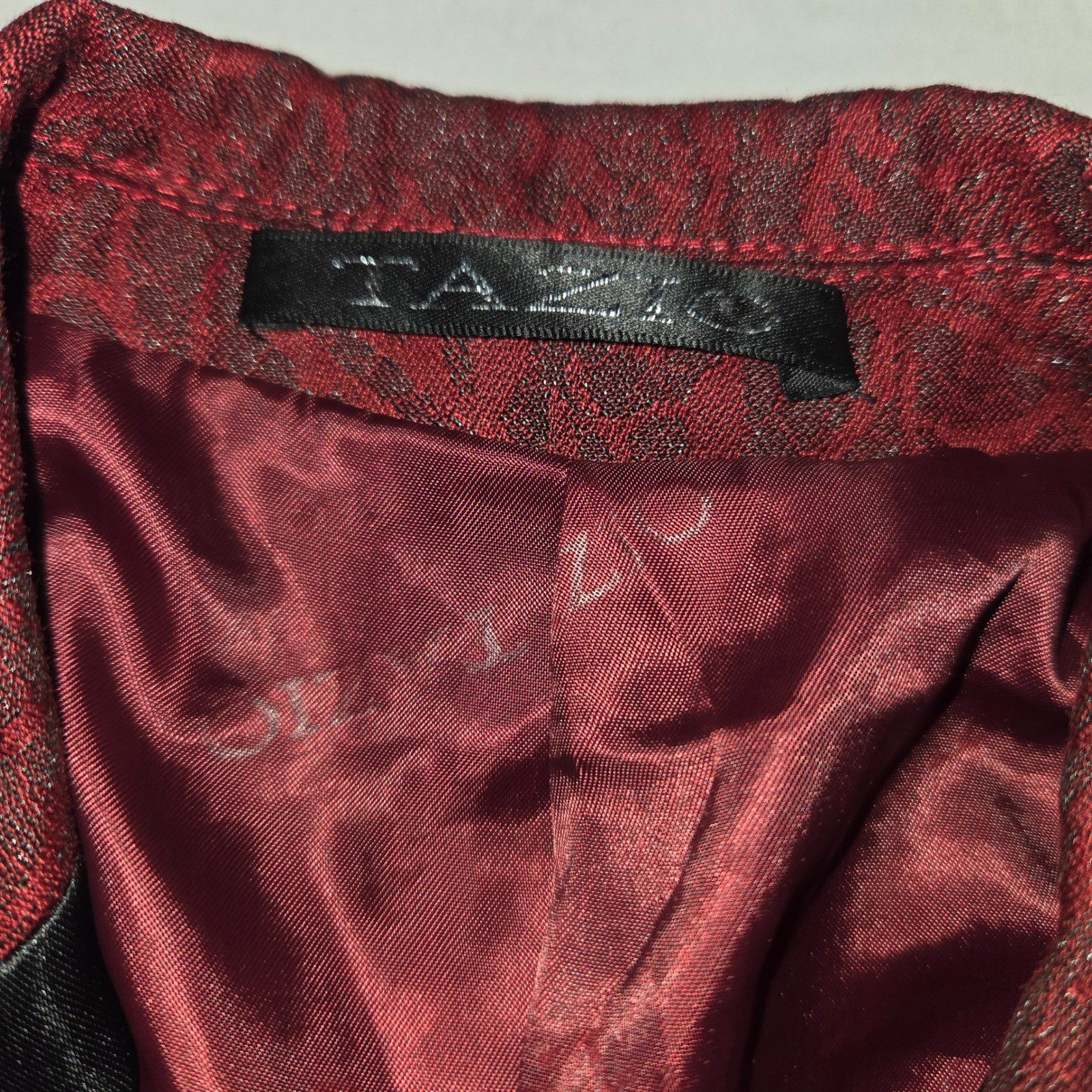 как выглядит Tazio Mens Red Black Damask Floral Blazer Tuxedo Jacket Satin Peak Lapel Small фото
