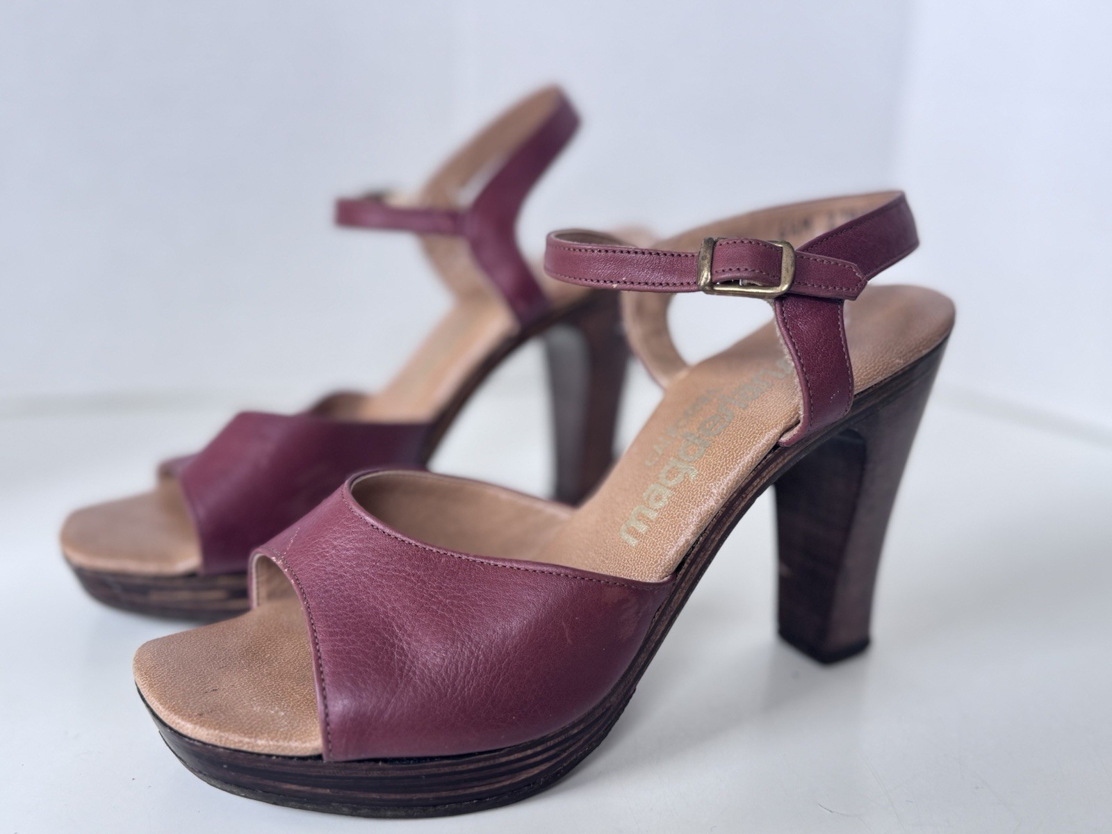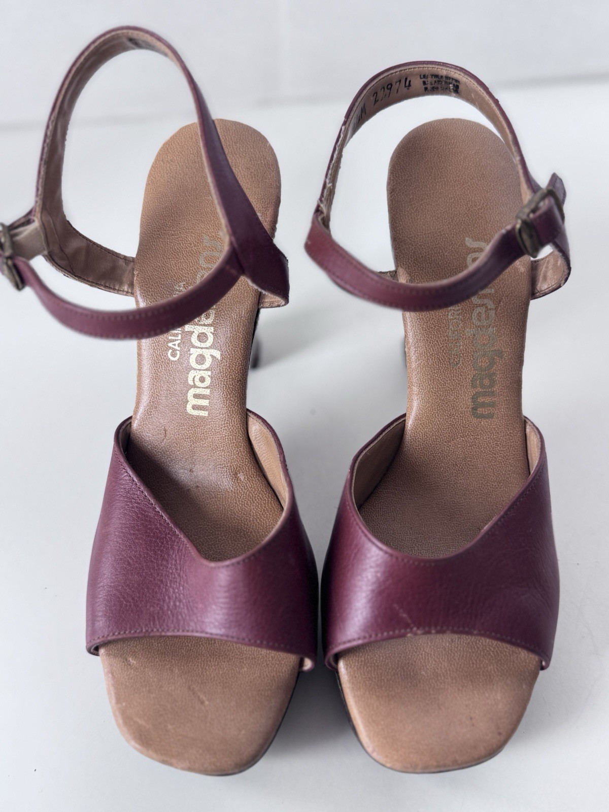 Vintage 70s California Magdesians Brown Leather Wooden Heel Sandals Shoes 6.5