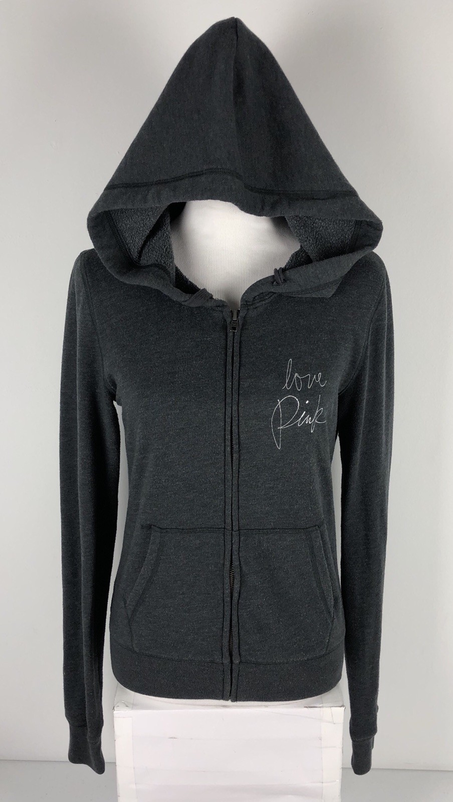 Victorias Secret PINK Size XS Sweatshirt Hoodie Gray Cotton Blend Full Zip EUC