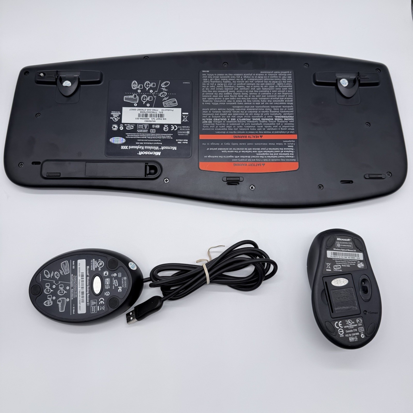 Microsoft Wireless Keyboard 3000 Mouse Optical 2.0 USB Receiver 3.1 Set TESTED