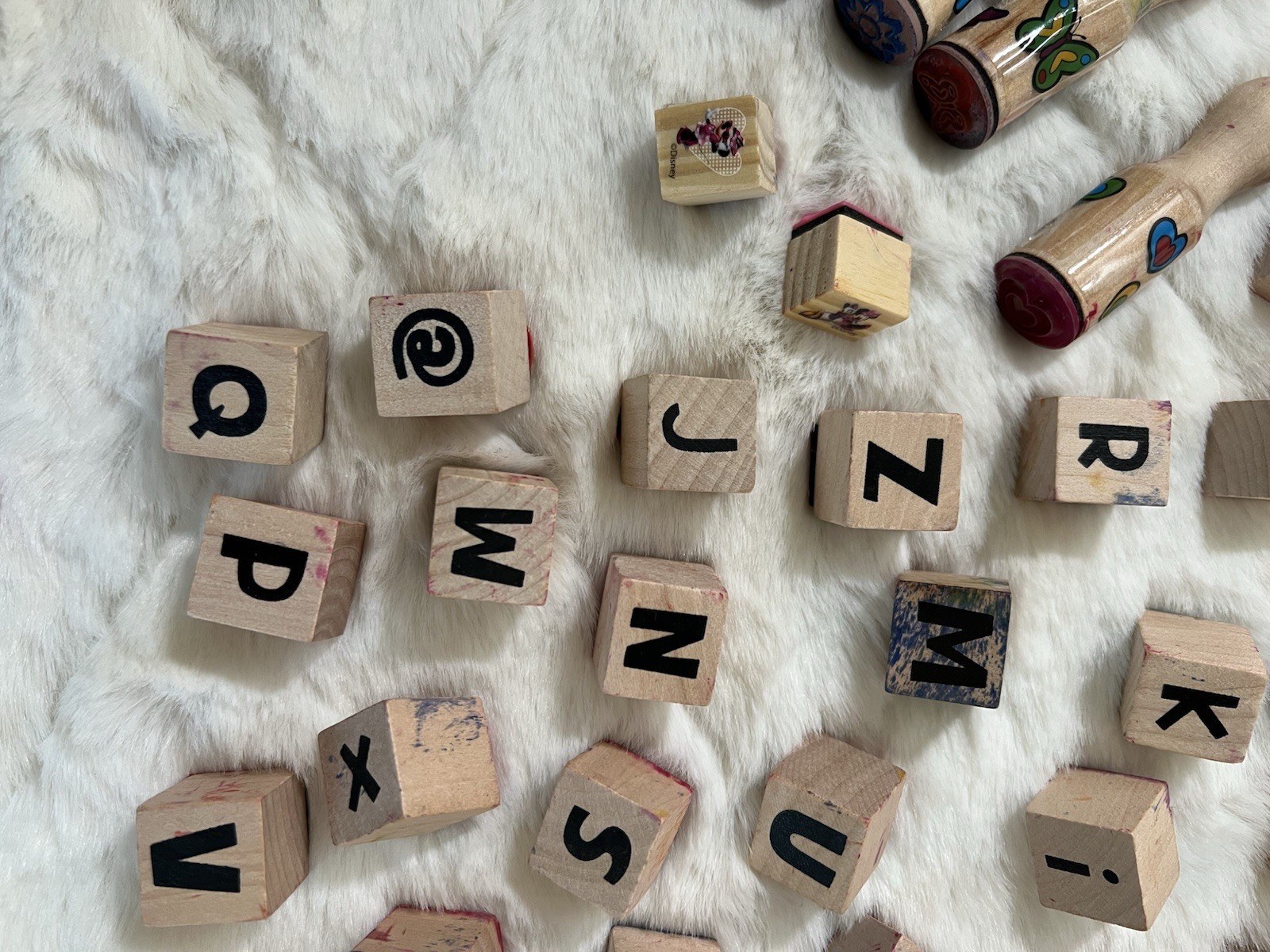 Wooden ABC Blocks w/ Stampers Kids Learning Toy Alphabet Montessori Set