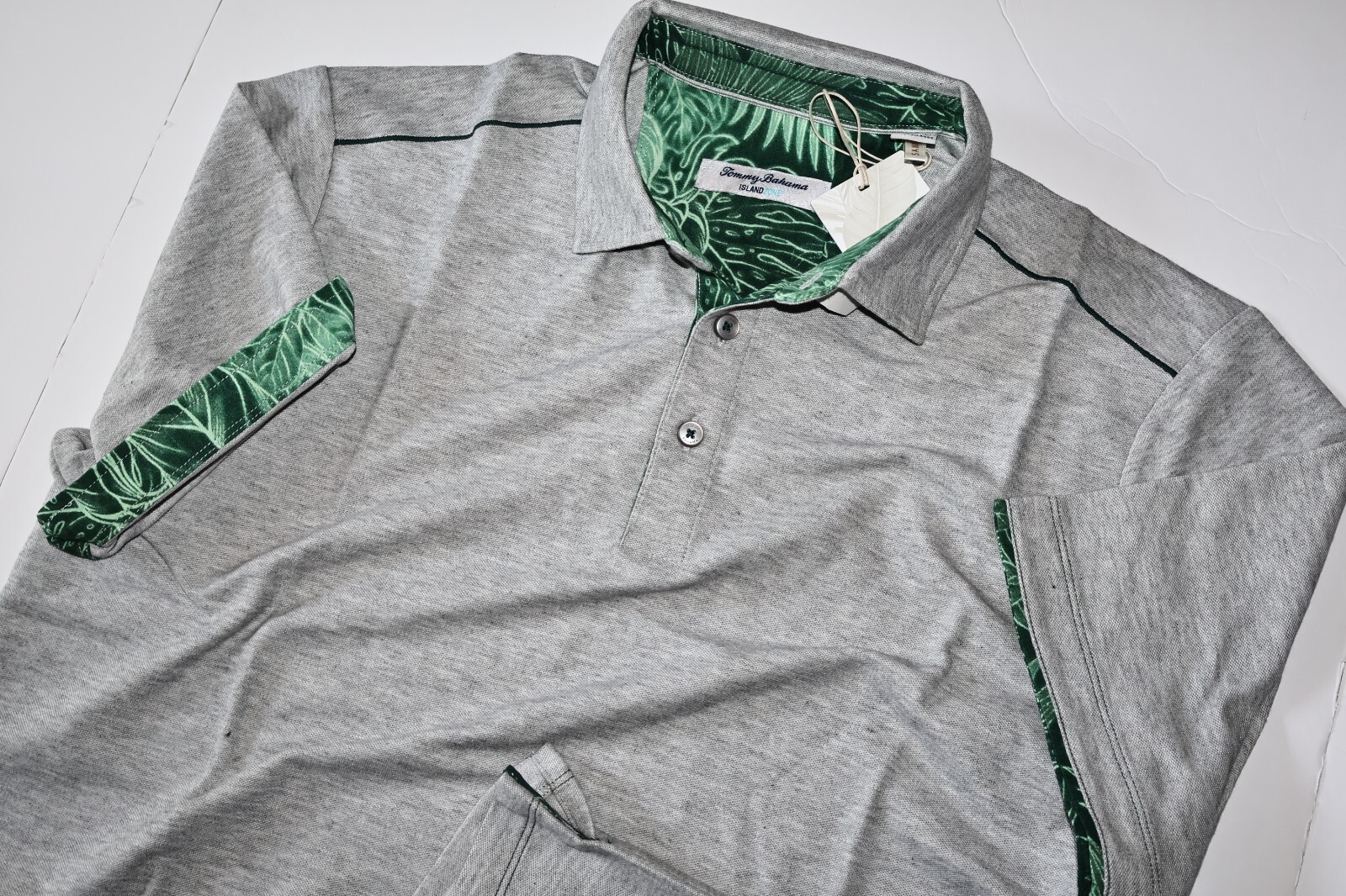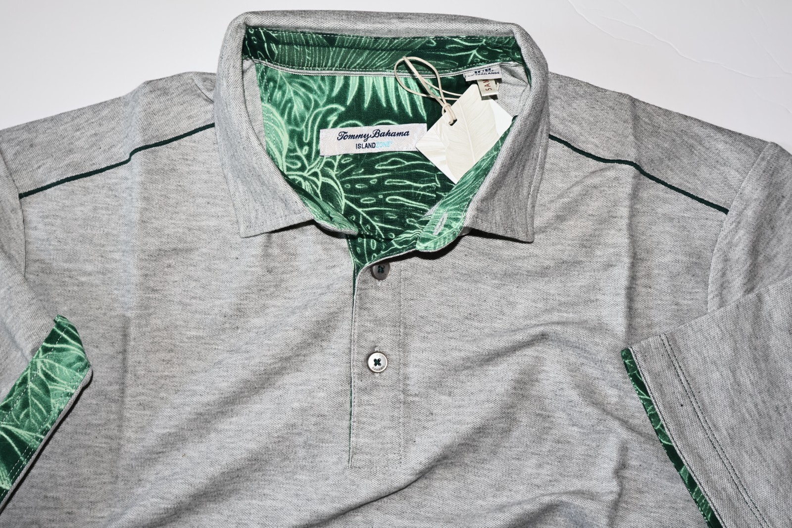Tommy Bahama Polo Shirt Tailgater Pique Viridian Grey SS New Medium M