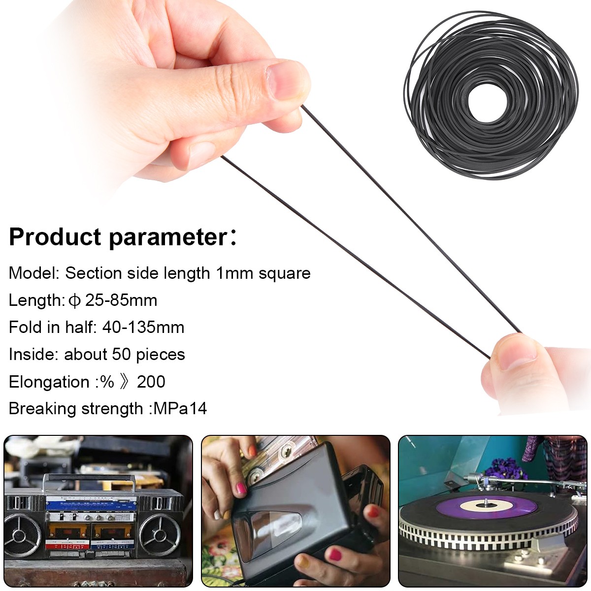 50 PCS Square Rubber Drive Belt For Cassette Player Recorder Repair Replacement