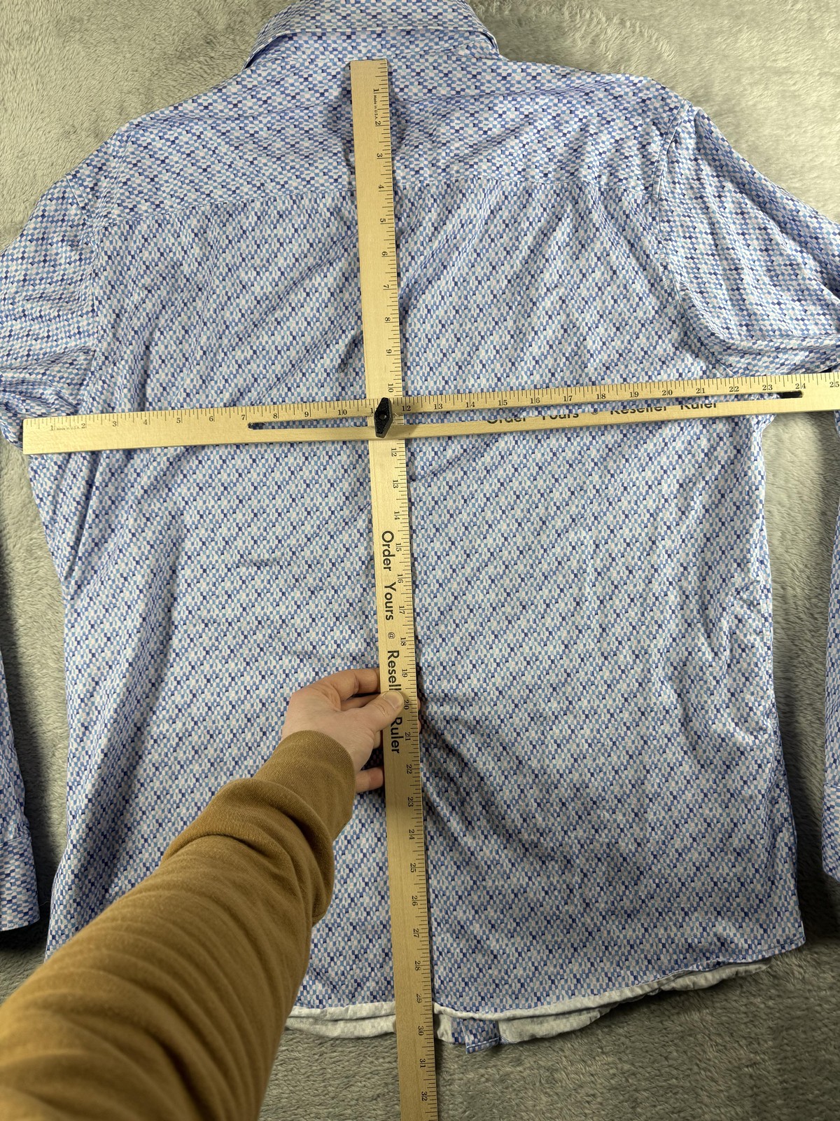 как выглядит Bugatchi Shirt Mens 2XL Blue Geometric 8 Way Stretch Casual Dress Perforfmance фото
