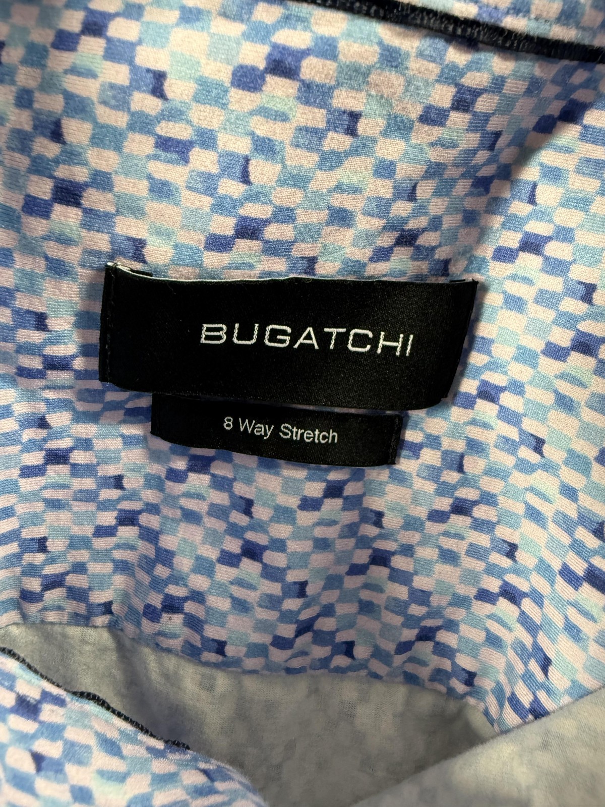 Bugatchi Shirt Mens 2XL Blue Geometric 8 Way Stretch Casual Dress Perforfmance