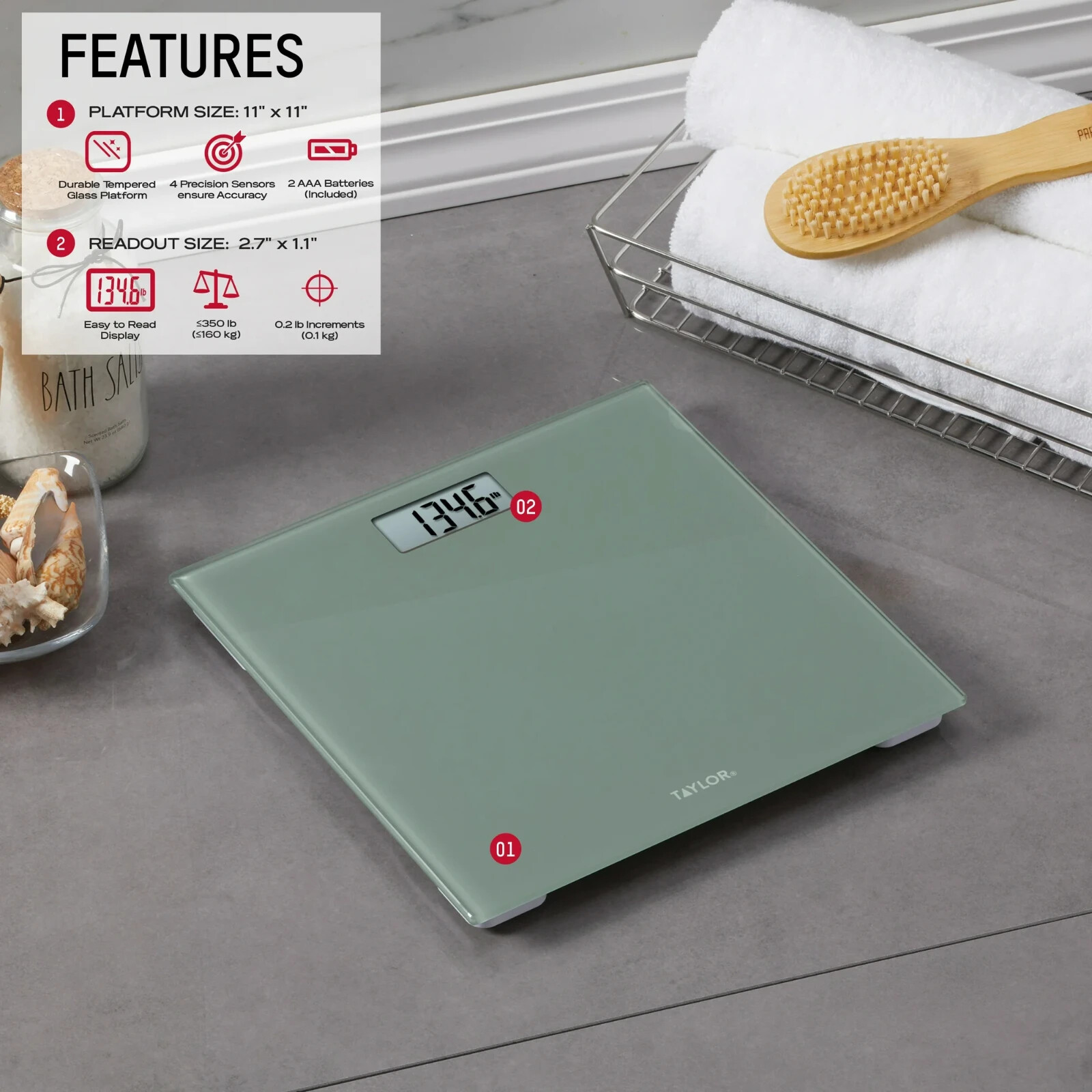 Taylor Glass Digital Bathroom Weight Scale with Sage Finish New Up To 350 Lbs