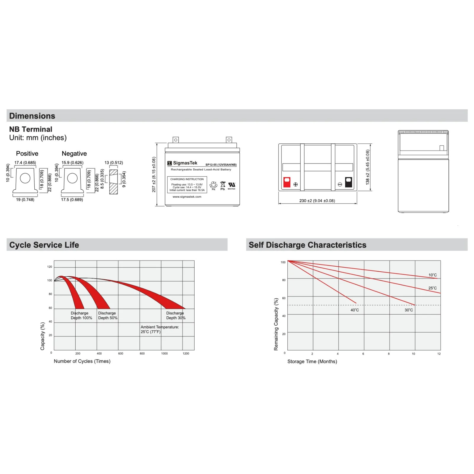 12V 55Ah Rechargeable Battery for Pillar Technology Deluxe Powerchair Wheelchair