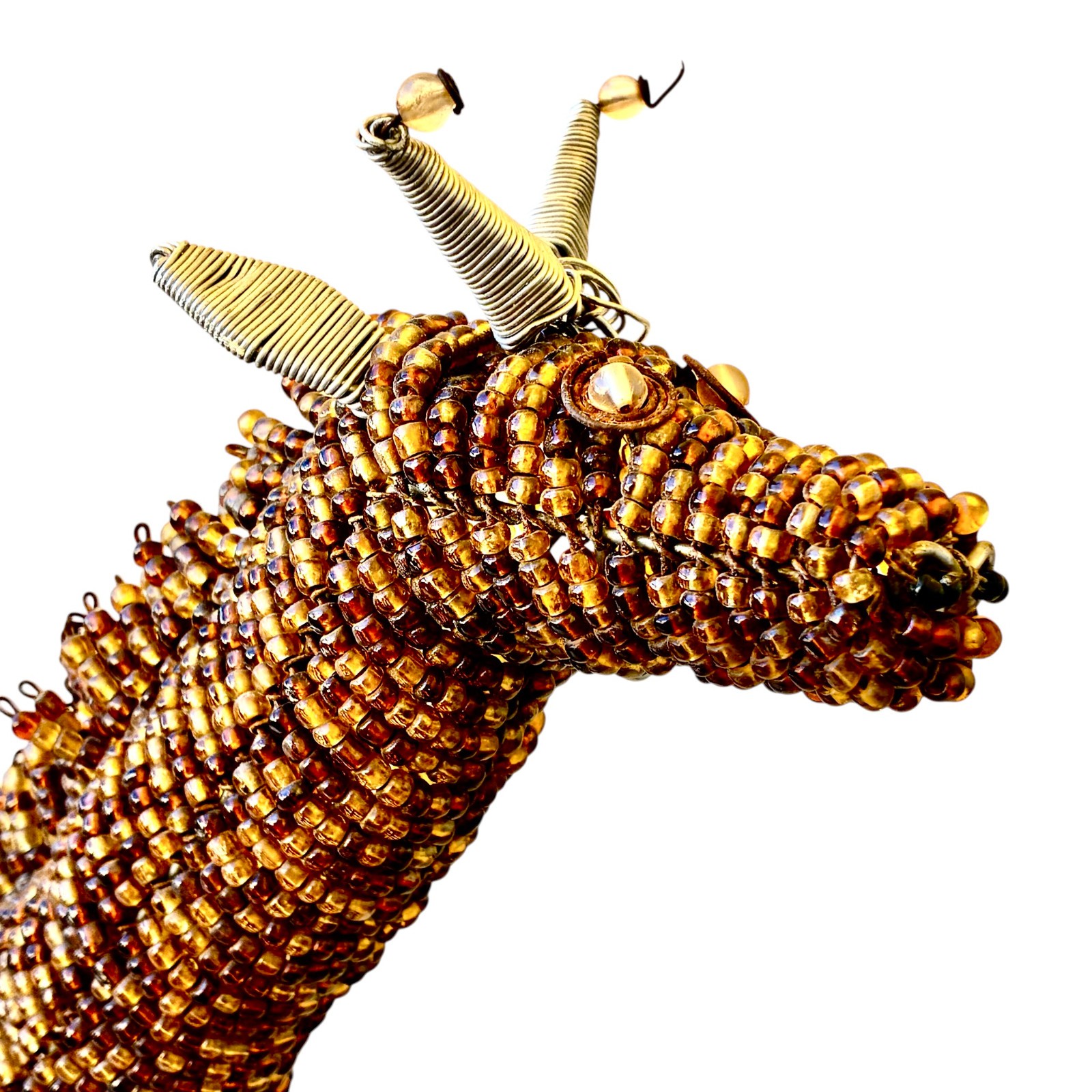 • African Beads Wire Giraffe Decorative Sculpture 13" Beaded Standing