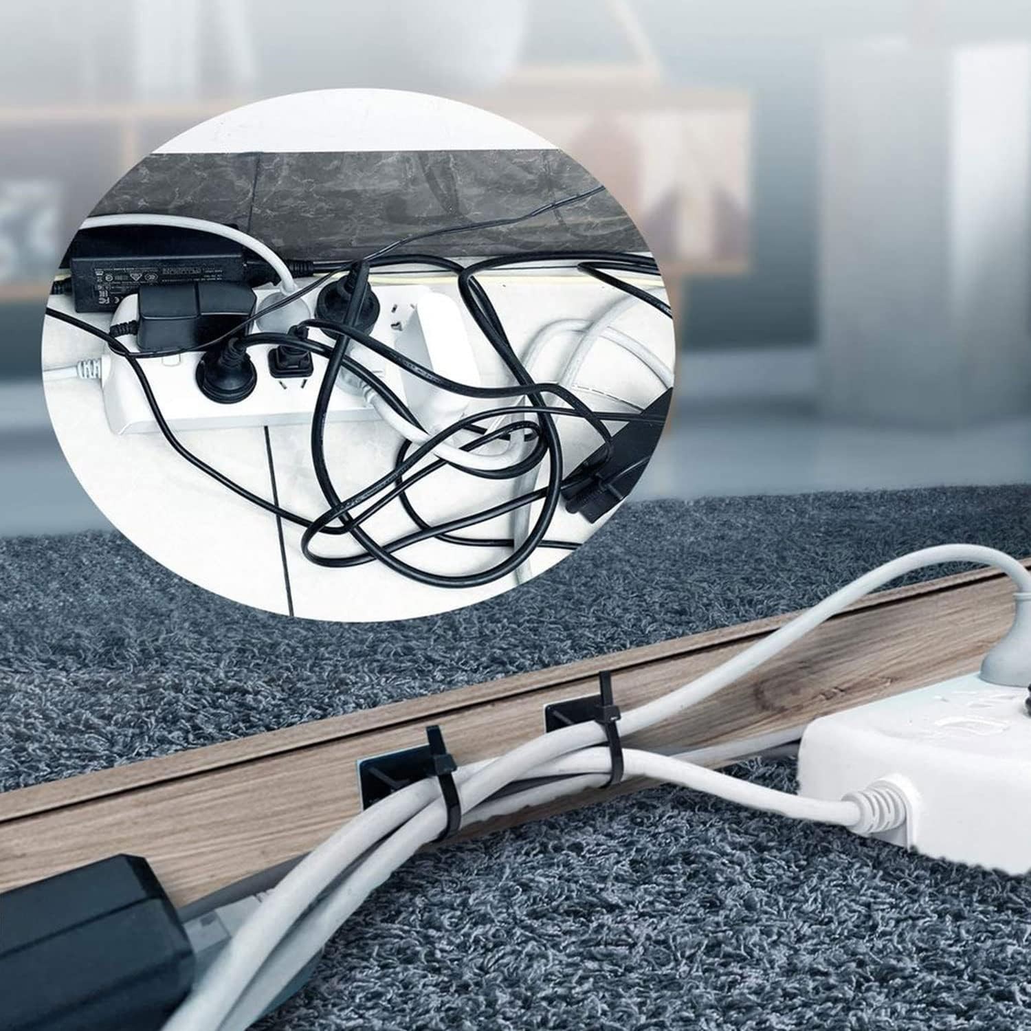 как выглядит Strong Back-Glue Self Adhesive Cable Zip Tie Mounts Kit - 100 Set Cable Manageme фото