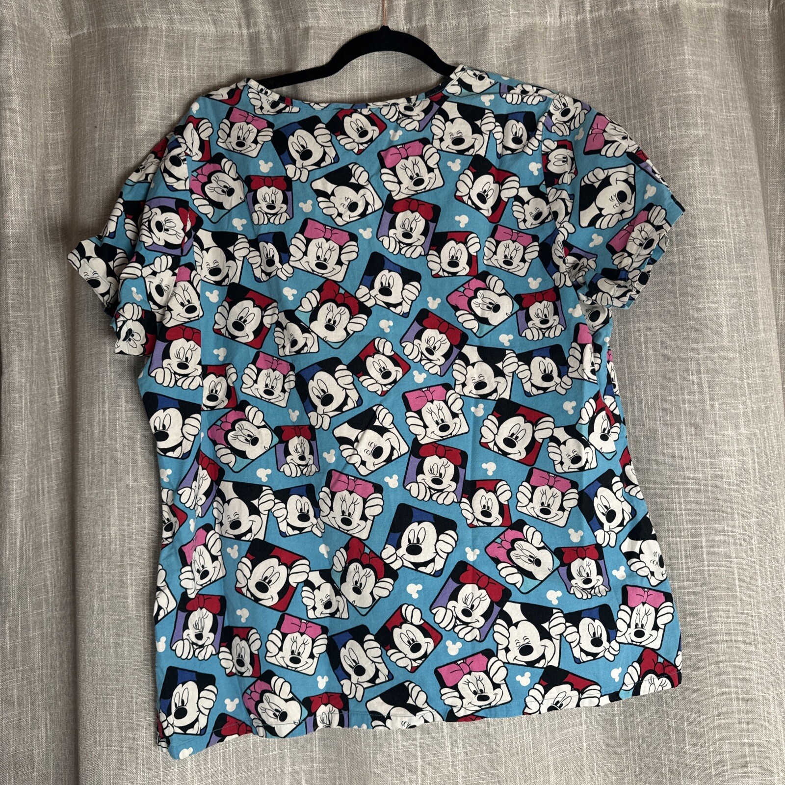 как выглядит Disney Mickey And Minnie Mouse Women s Scrub Top Size L Hearts Cute Medical Top фото