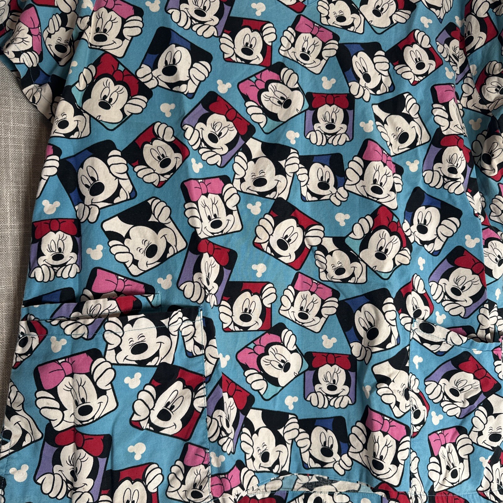 Disney Mickey And Minnie Mouse Women s Scrub Top Size L Hearts Cute Medical Top