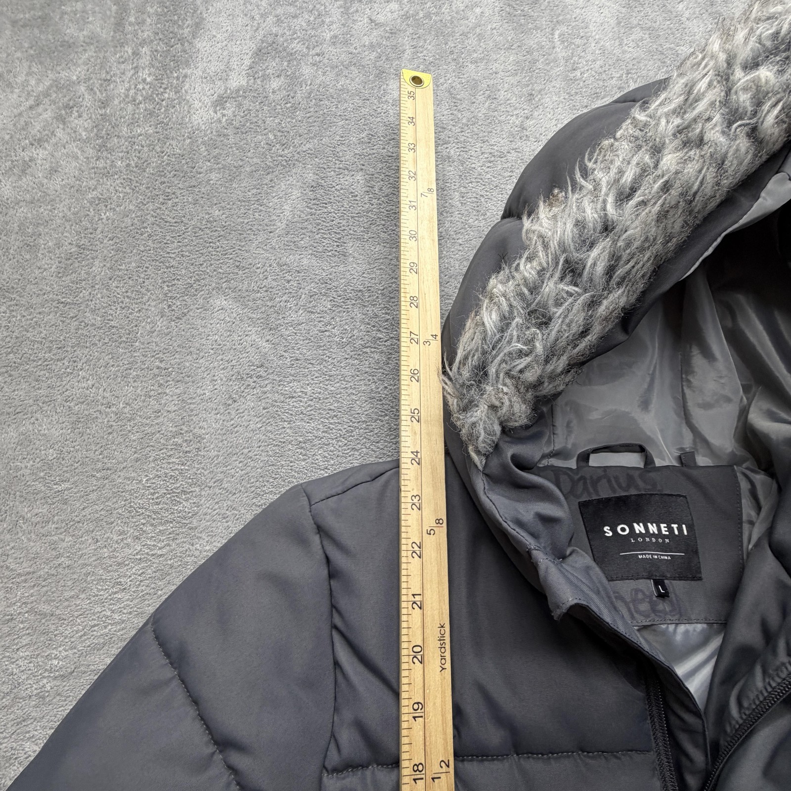 как выглядит Sonneti Jacket Youth Large Gray Puffer Hooded Faux Fur Insulated Winter Coat фото