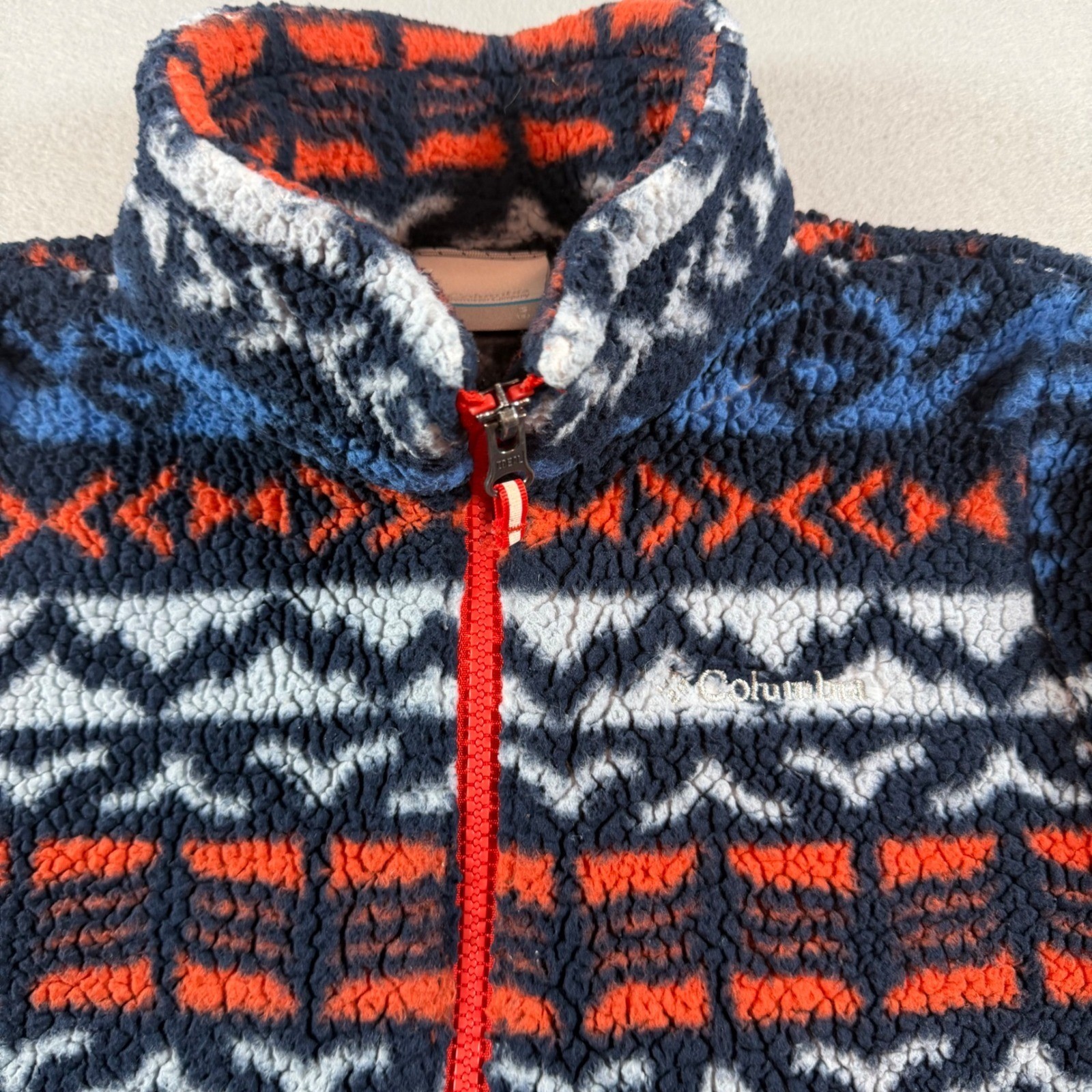 Columbia Kids Sherpa Fleece Jacket S 8 Navy Orange Geometric Full Zip