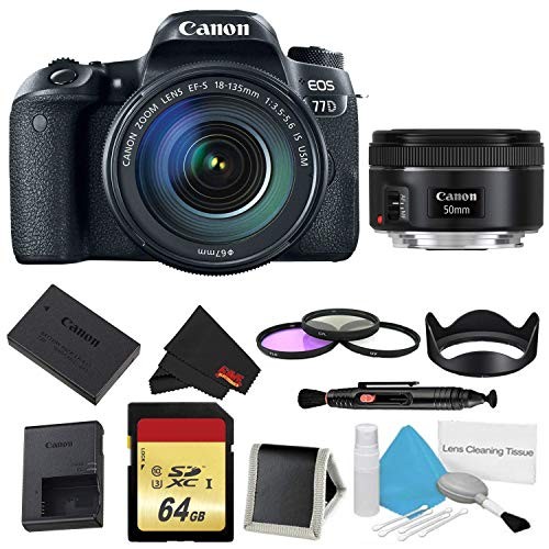 Canon EOS 77D DSLR Camera 18-135mm Lens Bundle w/ 3 Piece Filter Memory Kit