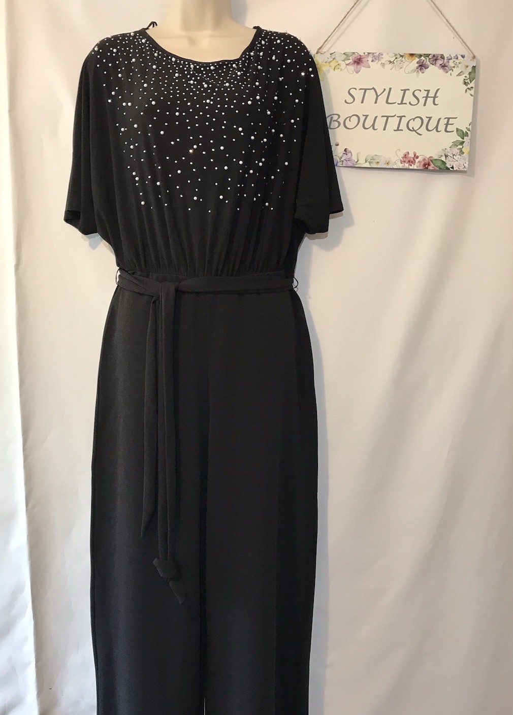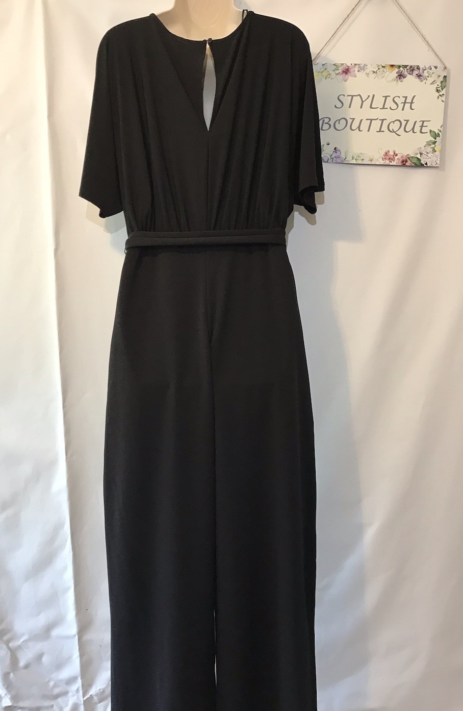 New Lipsy Size 12 Black Hotfix Belted Wide Leg Flutter Sleeve Jumpsuit
