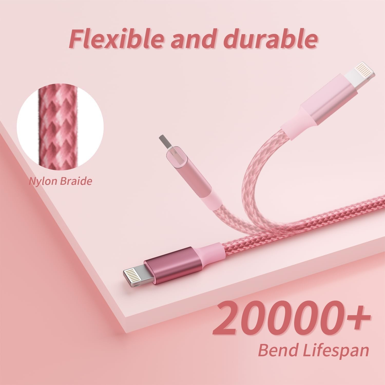 Multi Charging Cable, 3 in 1 Cord for Multiple 3IN1-4FT2Pack, Pink