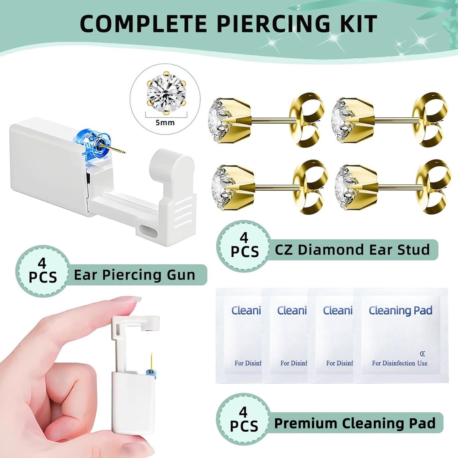 Nunpag 12 Pcs Ear Piercing Kit Disposable Gun with 4 Gold