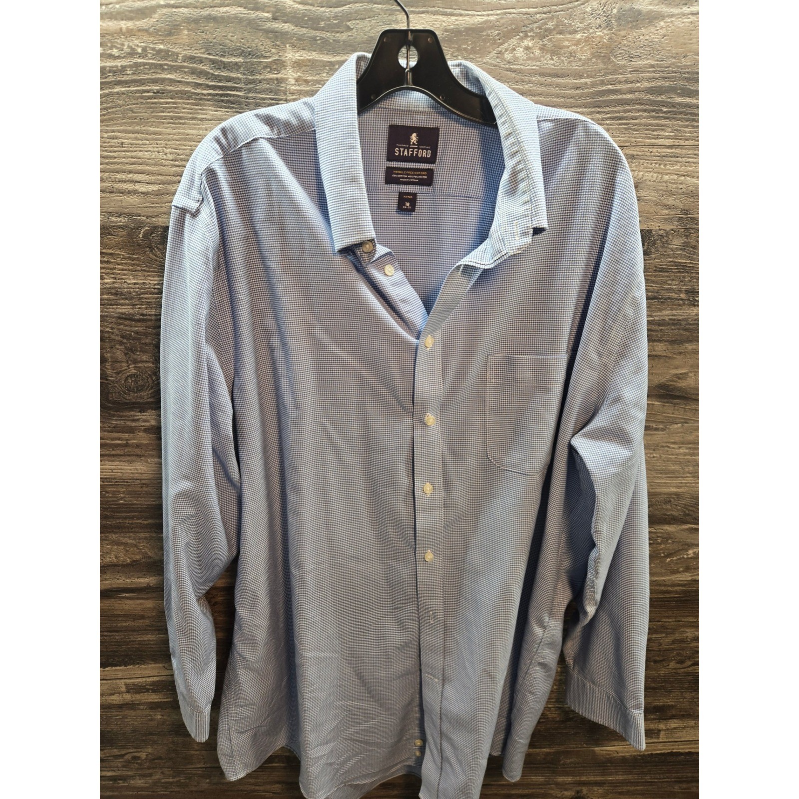 Lot of 2 Stafford Mens Wrinkle Free Oxford Shirts 18 34-35 Blue Grey Long Sleeve