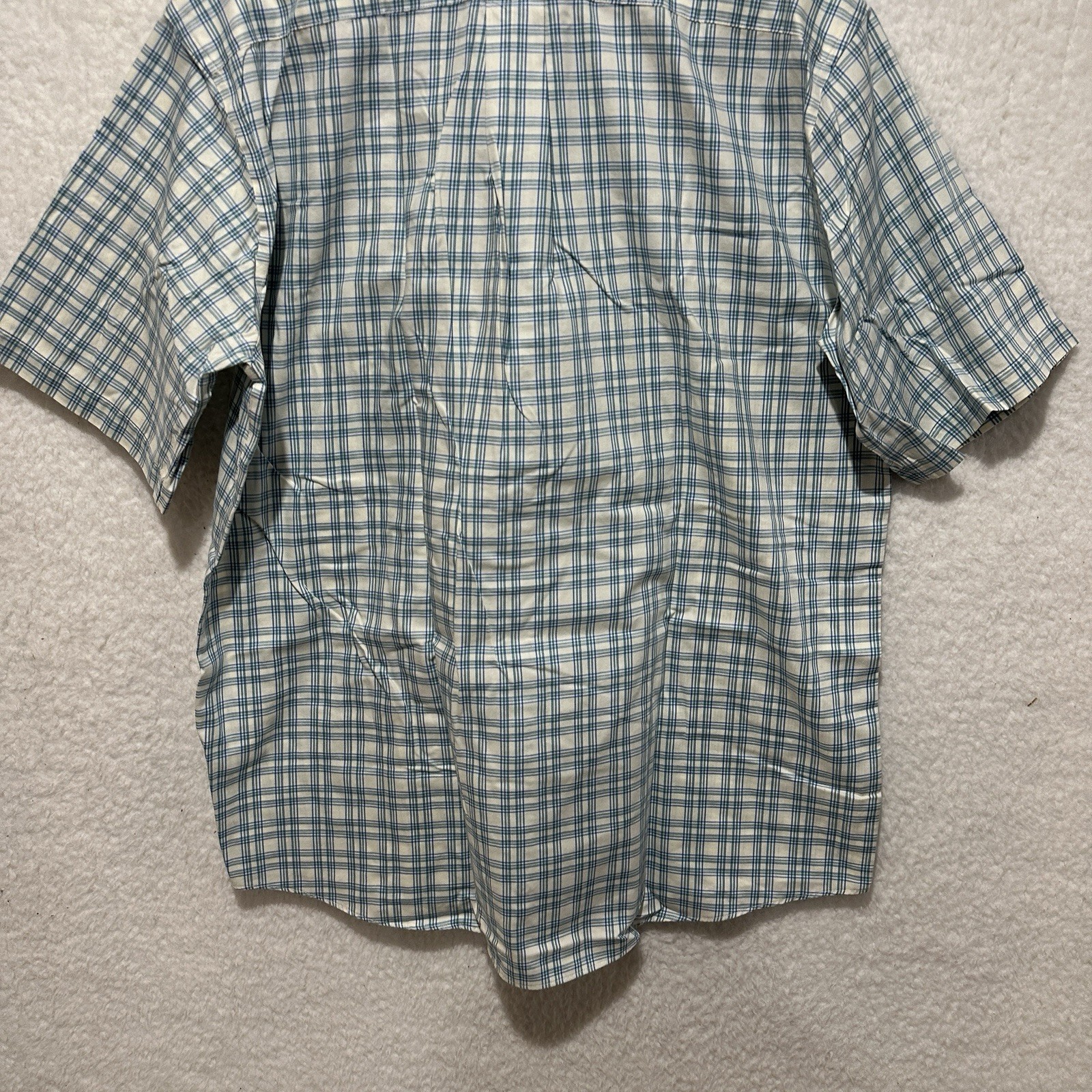 L.L. Bean Traditional Fit White Green Blue Plaid Print Button-Up Shirt Mens Sz L