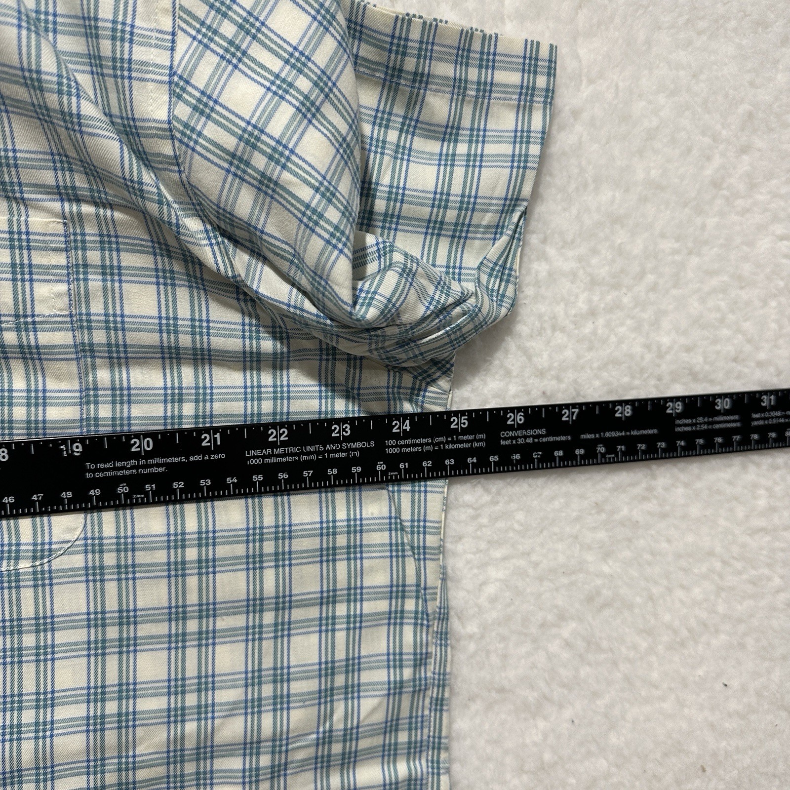 как выглядит L.L. Bean Traditional Fit White Green Blue Plaid Print Button-Up Shirt Mens Sz L фото