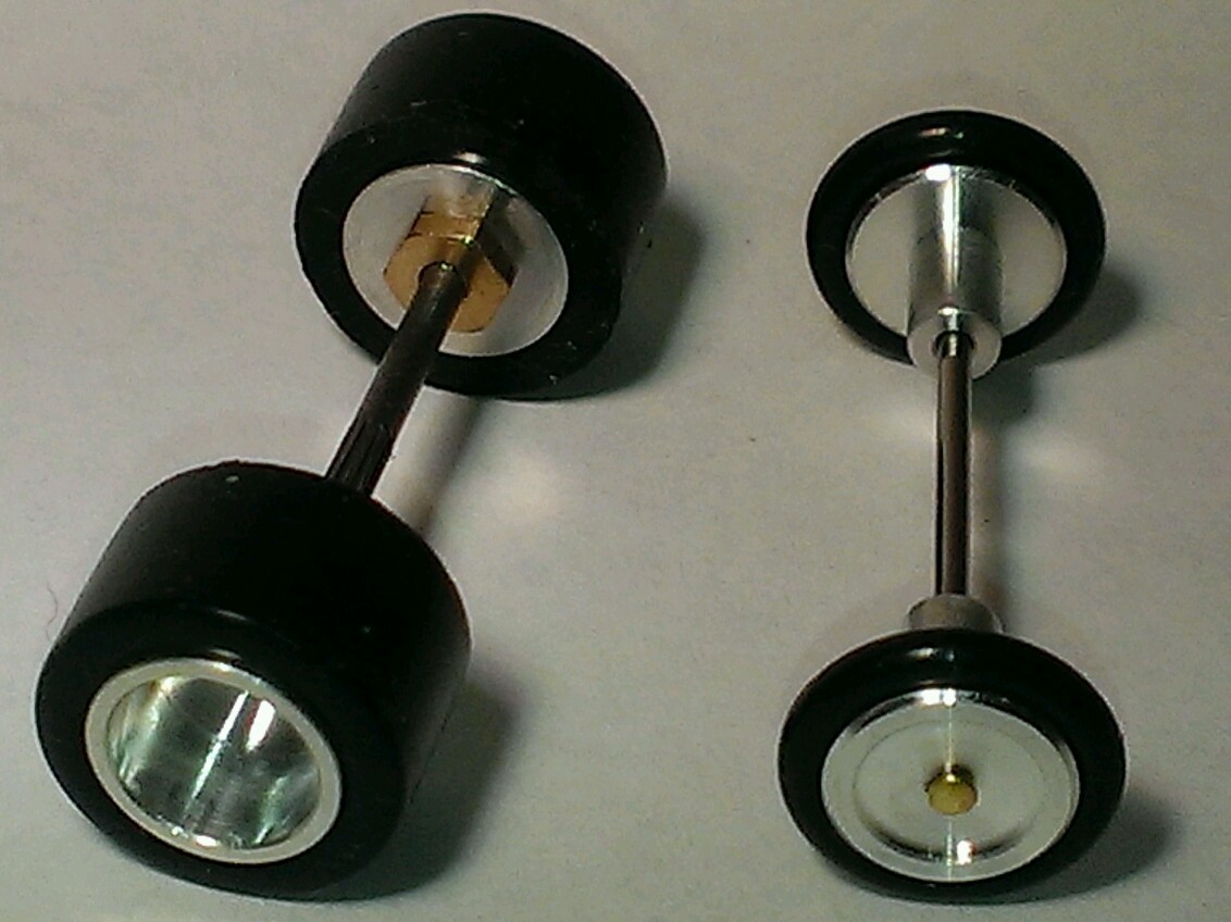 HO AFX 1 Aluminum Rim Set Skinny Pin On Fronts w Independent Rotation
