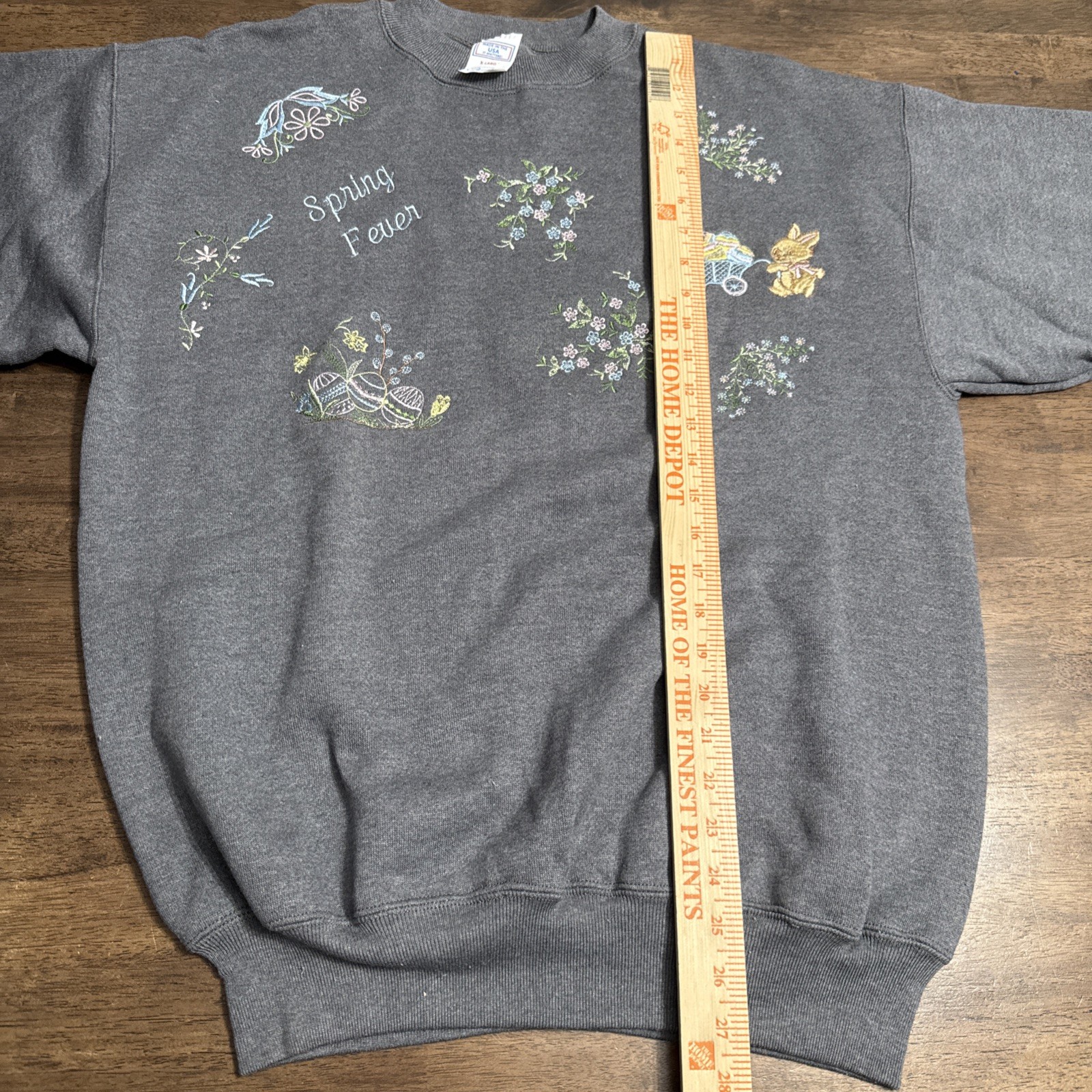 VTG Handmade Pannill Embroidered Easter Bunny Spring Crewneck S/S Sweatshirt XL