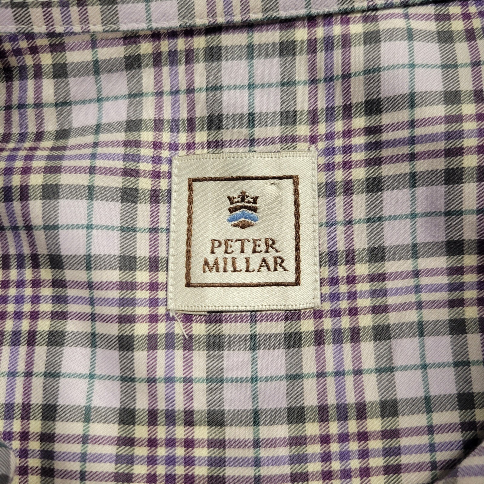 Peter Millar Mens Medium Purple Plaid Cotton Long Sleeve Button Down Shirt